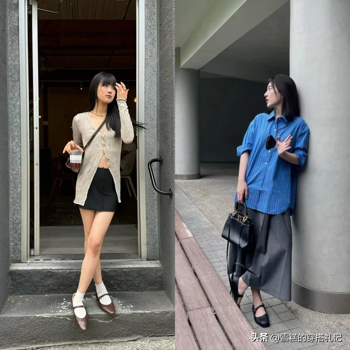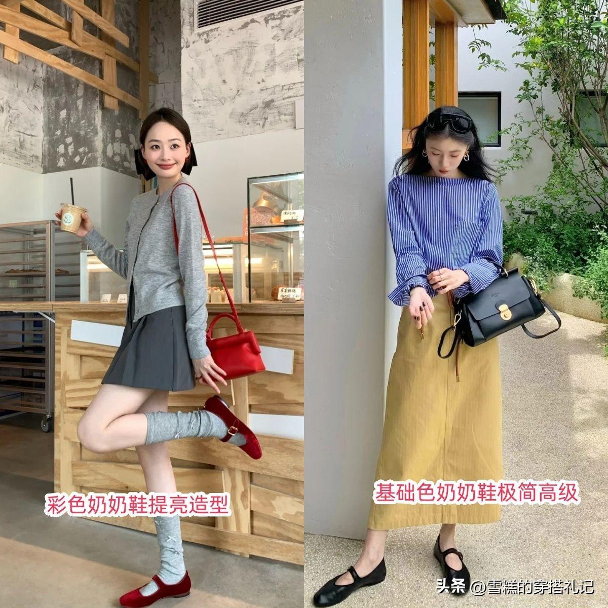 或許這樣說很多人會覺得抽象,其實這種氛圍感早早地就出現在杭州、上海等潮人聚集地的街頭了。就拿杭州來看,如今街頭基本已看不到褲裝造型了,基本都是以裙裝爲主,搭配各色平底鞋的造型,其中更是大多以“奶奶鞋”爲重點。