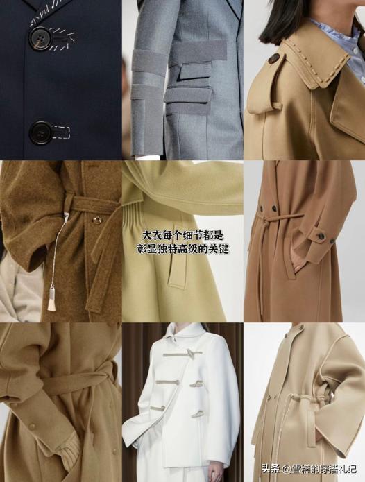 每一件大衣看上去都差不多,上身的效果卻會有天差地別,是因爲大衣的細節處理不同,這也是避免撞衫尷尬的關鍵。大衣細節的處理體現在:紐扣、衣領、肩部、袖口還有腰部等位置,每個細節的線條要明顯,且不要有線頭,上身就會給人營造出很貴的形象。