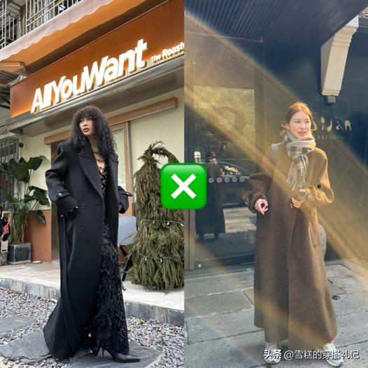 若是大衣本身的長度沒有選對,再怎麼搭配都是做無用功。當下流行的一款超長款的大衣,建議沒有超過1m75身高的女人都不要輕易的嘗試,這種衣服挑剔身高的同時還講究個人的氣質,沒有絕佳的衣品,超長拖地款大衣上身只會有一種小孩穿大人衣服的既視,突兀又拖沓。