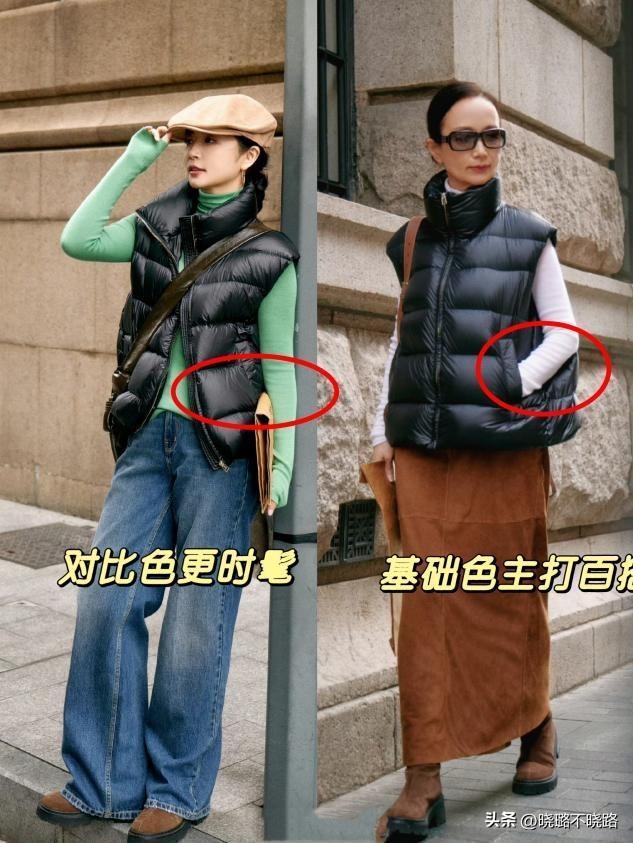 服裝的配色總是能夠引起大家的注意,有時候一樣的衣服,換個顏色組合,瞬間不一樣了。像三木博主特別喜歡的馬甲和針織打底衫,黑色與白色組合深淺對比鮮明,給人滿滿的高級與簡約,很適合三十歲以上的中年女性。但是換成綠色+黑色的組合後,基礎色與亮色瞬間碰撞出更多的魅力,看起來超級時髦。但是增加色彩對比的同時,儘可能選擇純色系列的單品,否則容易給人眼花繚亂的感覺。