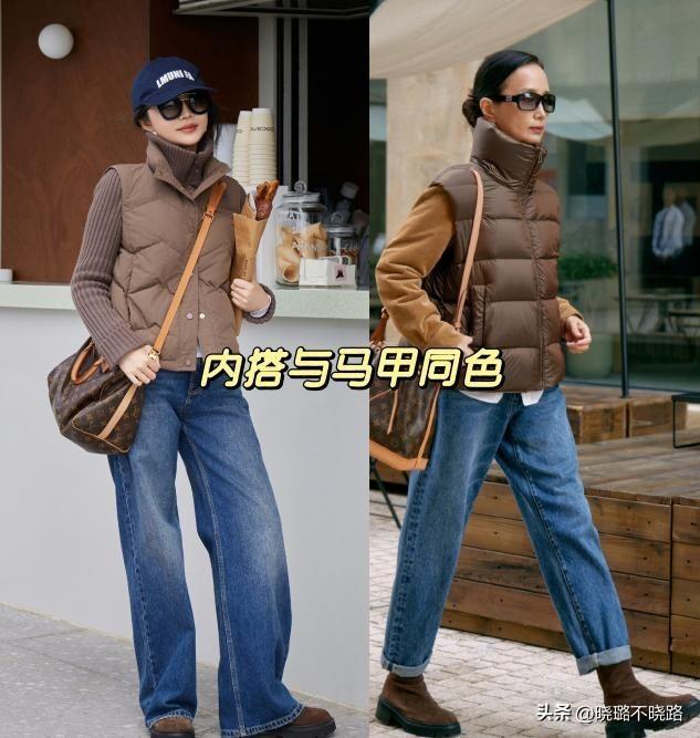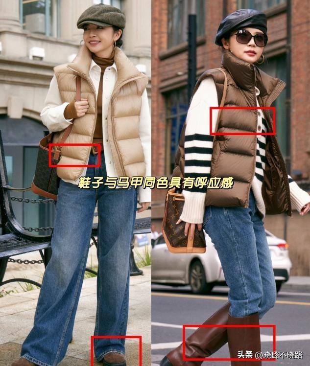 羽絨馬甲在秋冬季節的實用性很強,造型簡約的同時還具有保暖性,可以作爲外套穿也可以作爲內搭。像三木博主這樣搭配一件簡單的白色毛衣,利用色彩的反差營造 了豐富的層次,視覺上會更加 顯瘦一些,而且配上同一種顏色的中筒靴,上下呼應,使得造型的統一感得到了提升,看起來超有品位。