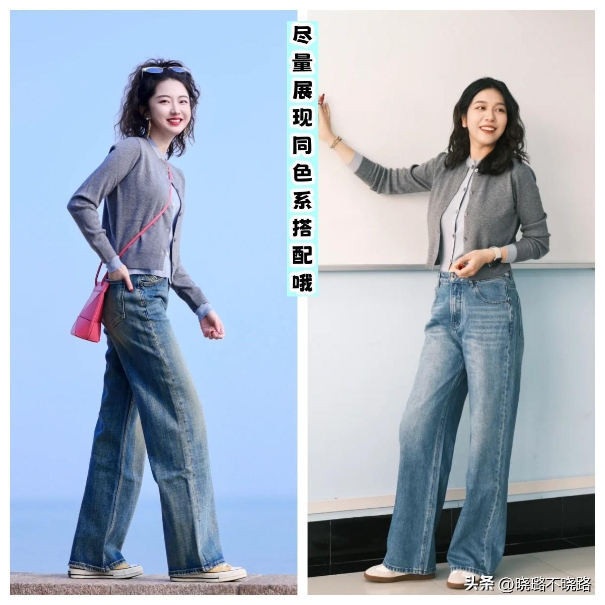 奶奶衫和直筒褲這兩款單品的基礎百搭性還是比較明顯的,且可以很好的彰顯出來多種風格的走向,第1種的話推薦大家可以將比較隨性減齡的氣質彰顯出來。那麼在色系的運用當中就可以偏向於彩色結合基礎色這樣的組合。