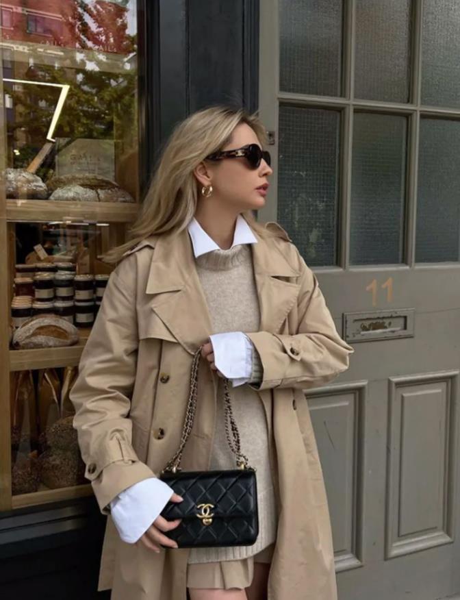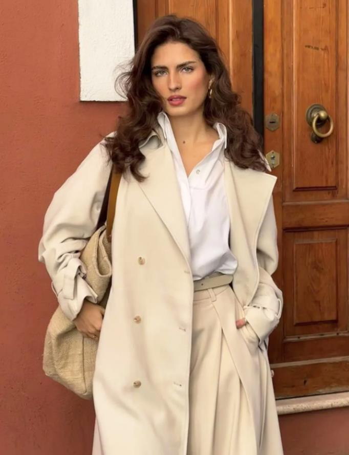 淺卡其色風衣,這個色調真的很不失個人氣質呢,內搭基礎款白襯衫,很好將女性的魅力展現出來,也可以穿出漫不經心的高級感,整個着裝看起來就十分灑脫。