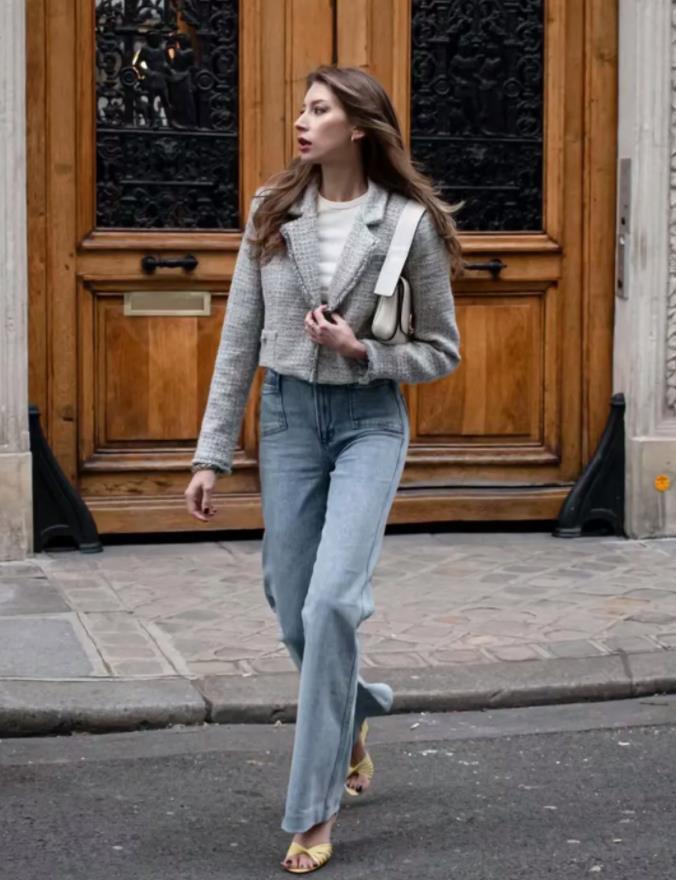 在秋天,小香風外套可是備受歡迎的,乾淨的白色小香風外套,可以讓你穿出高級感,也不失個人氣質,搭配一條牛仔褲,這樣不僅耐看,還能打造出利落感,也透着幾分濃濃的時髦感。