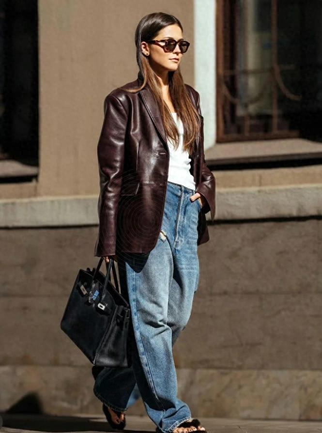 紫色的西裝外套,真的很吸睛呢,寬大的版型,加上厚實的面料,給足你身材包容性的同時,又可以穿出自由灑脫,也可以將女性的率性和女人味呈現,搭配一雙同色的長靴,大女人味的既視感就出現了。