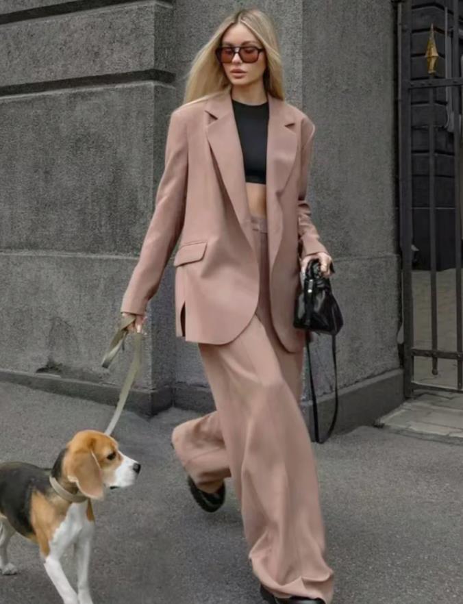 這種藕粉色的西裝外套,顏色是真的很特別啊,而且穿起來完全沒有想象中那麼顯呆板和正式,盡顯一份從容和自信,內搭選擇了一件黑色短款打底,適合初秋季節的穿法,很好展現出女性的獨立與自信美。