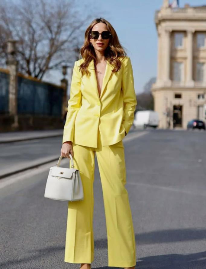 靚麗的黃色西裝套裝,可以提亮你的膚色,讓你看起來明豔動人,也展現出個人的魅力,有些帥氣的同時,又能穿出休閒氣息,寬度適中的版型,很好營造出一種優雅鬆弛的既視感。