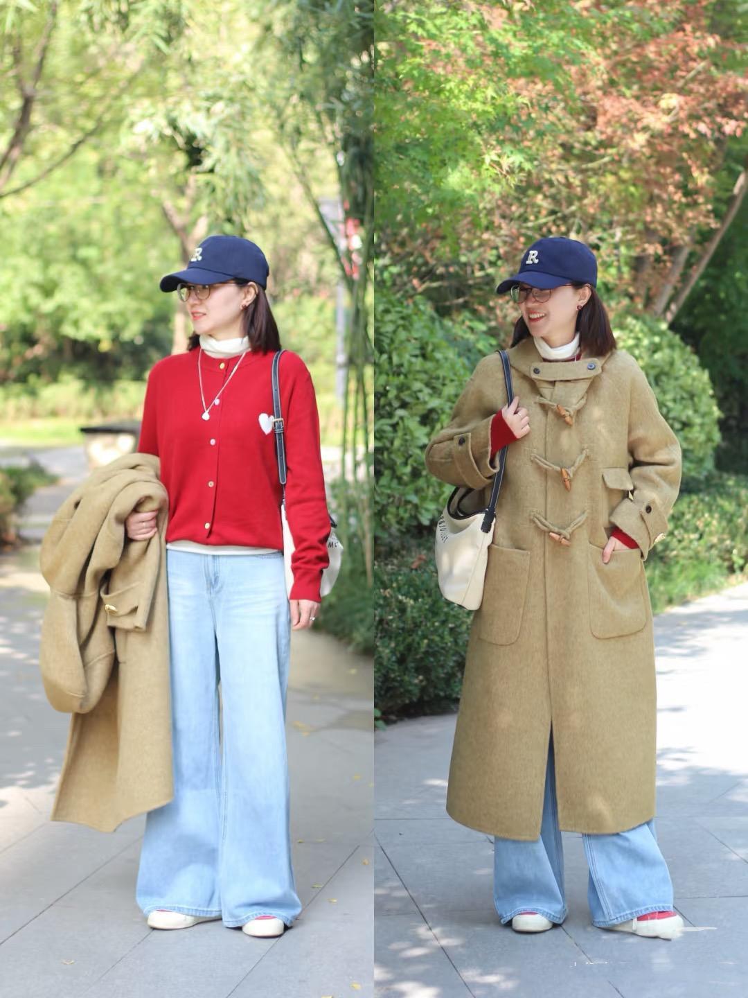 如果喜歡清新又活力的穿搭,可以嘗試紅色針織開衫+淺藍色直筒牛仔褲的組合。紅藍配色,青春有活力。