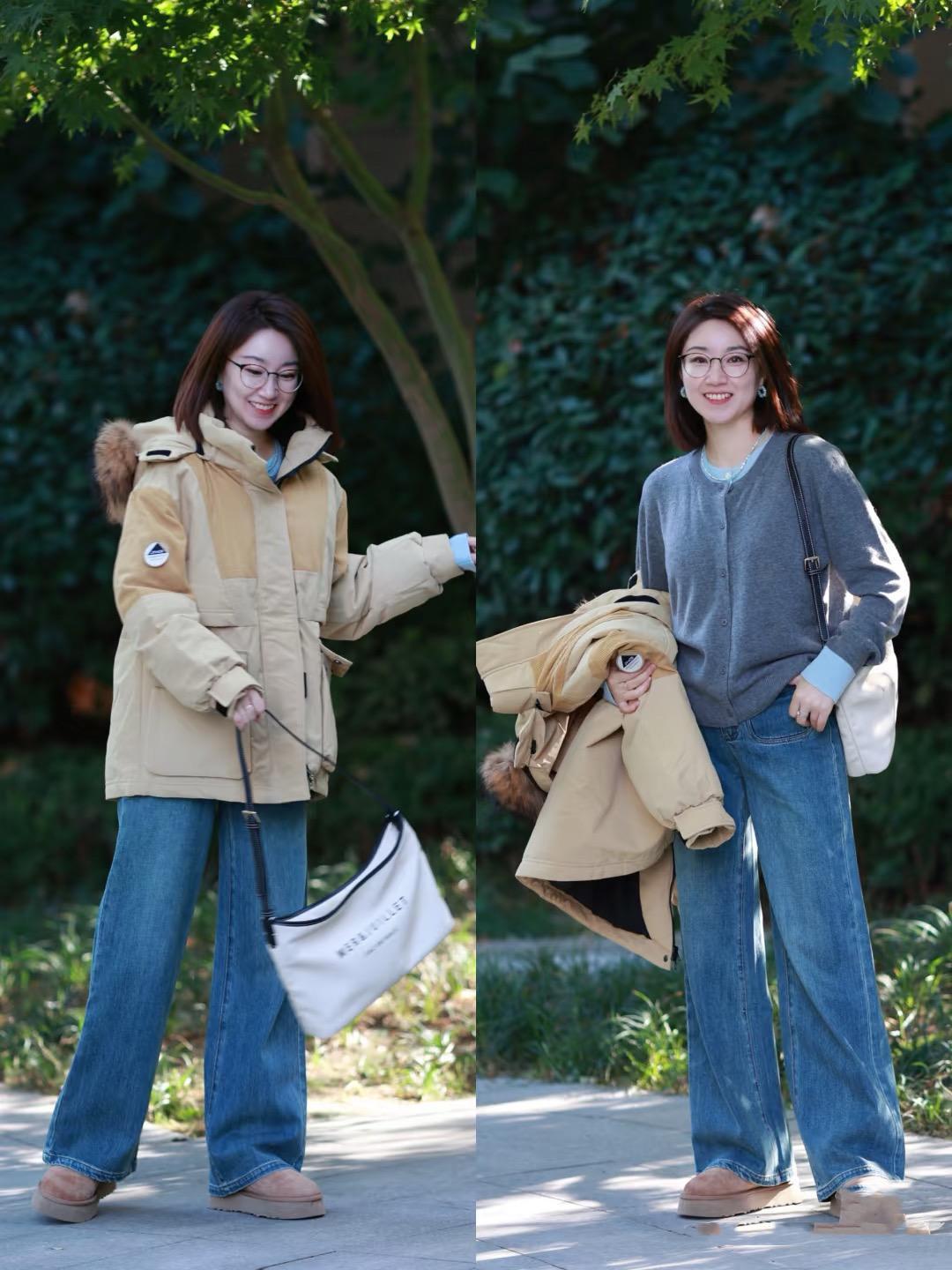 寬鬆的針織開衫,可以配高腰的直筒牛仔褲,可以顯得雙腿更加筆直修長。高腰的直筒牛仔褲,搭配厚底雪地靴,竟然那麼顯高、也不厚重。