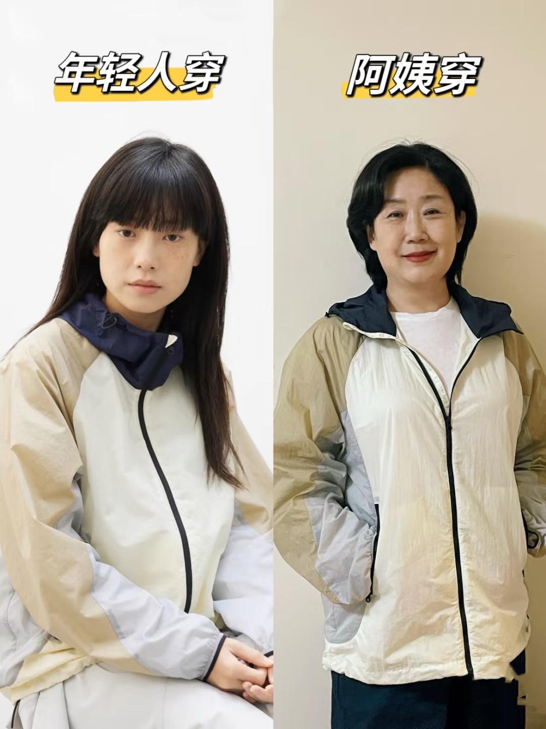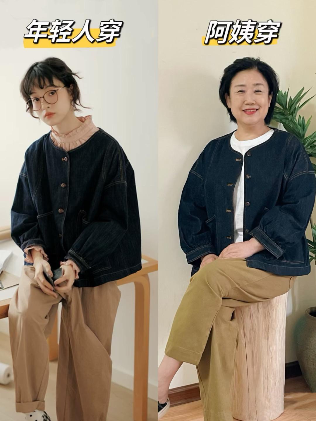 我們年紀大了,也得適當的安排運動。比如這種撞色的上衣,我們可以配直筒的牛仔褲,那種簡潔高級的美很大氣。撞色的山系外套,大方又不挑人。
