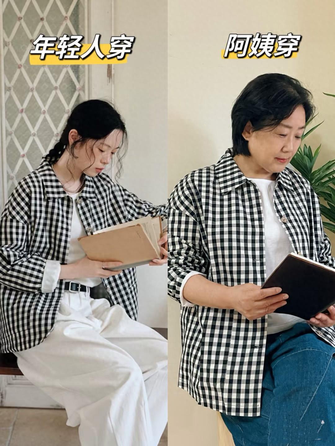 我喜歡年輕人的裝扮,也喜歡把自己打扮的文藝清新。比如這種黑白格子的襯衫,年輕博主搭配白T恤、白色闊腿褲,格外的乾淨秀氣。