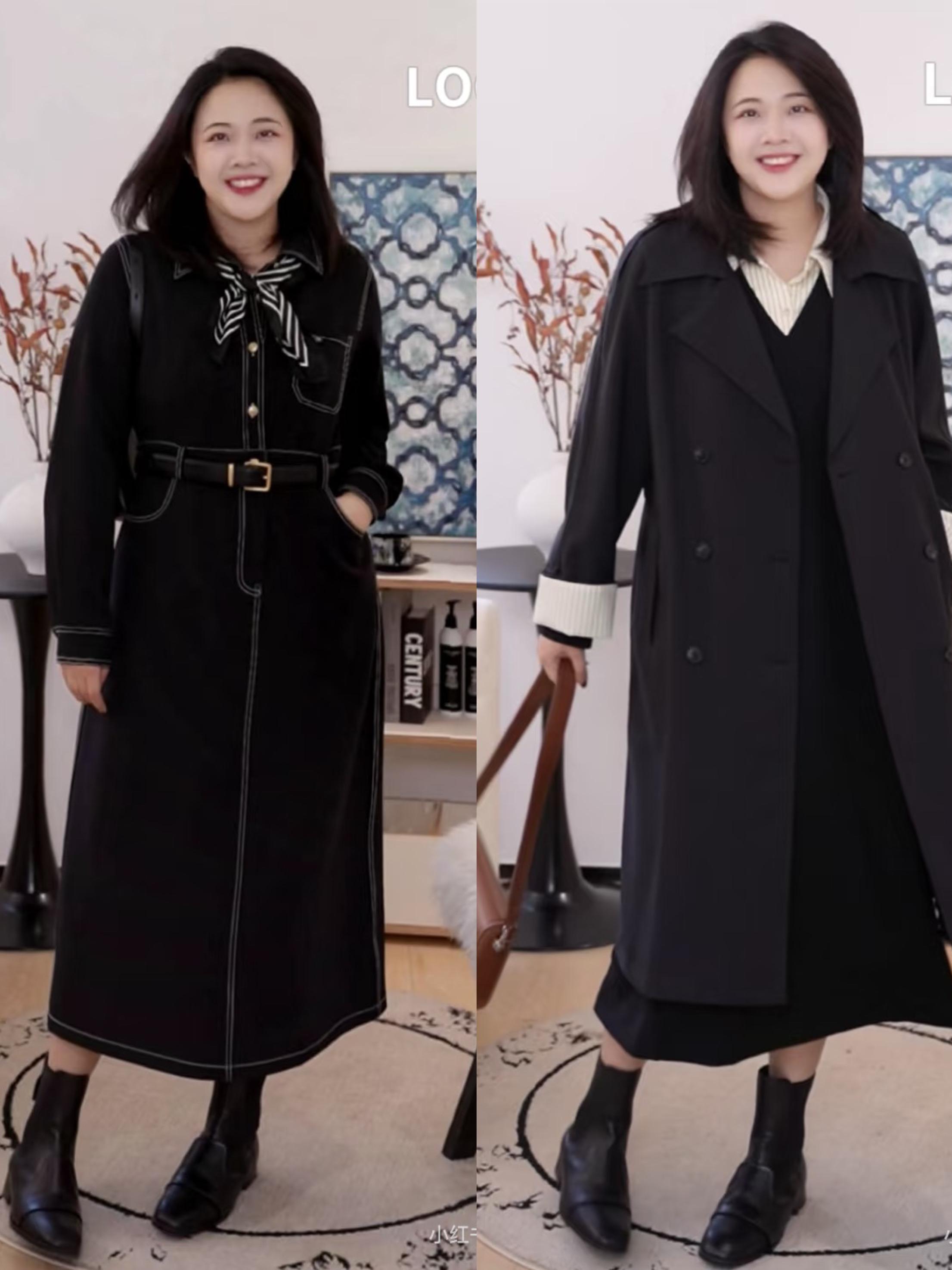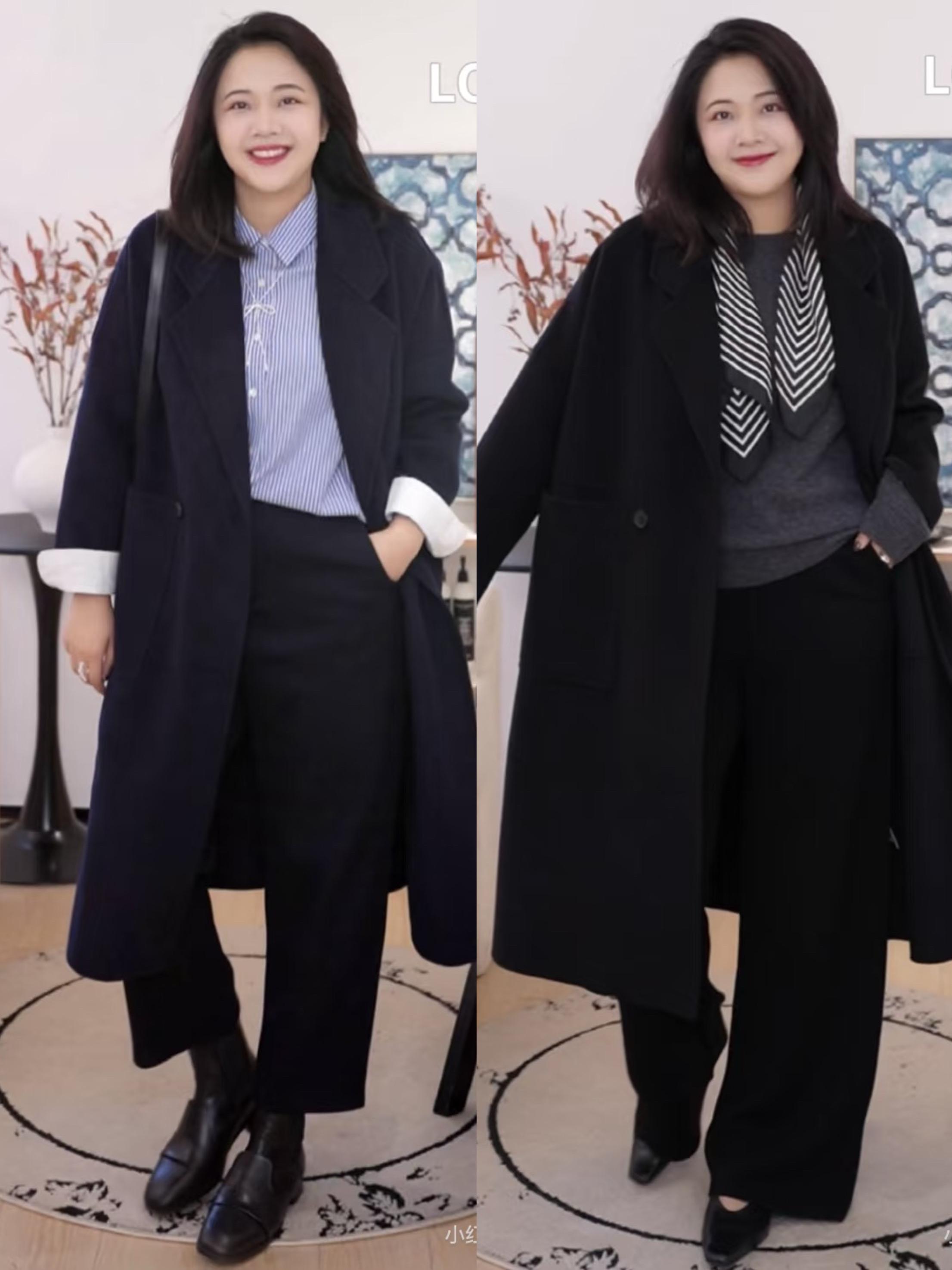 黑色大衣+黑色直筒褲的組合,就完美利用了色彩的延伸,拉長了身高的比例。比如這種黑色大衣+黑色直筒褲的搭配,就高級有品位。