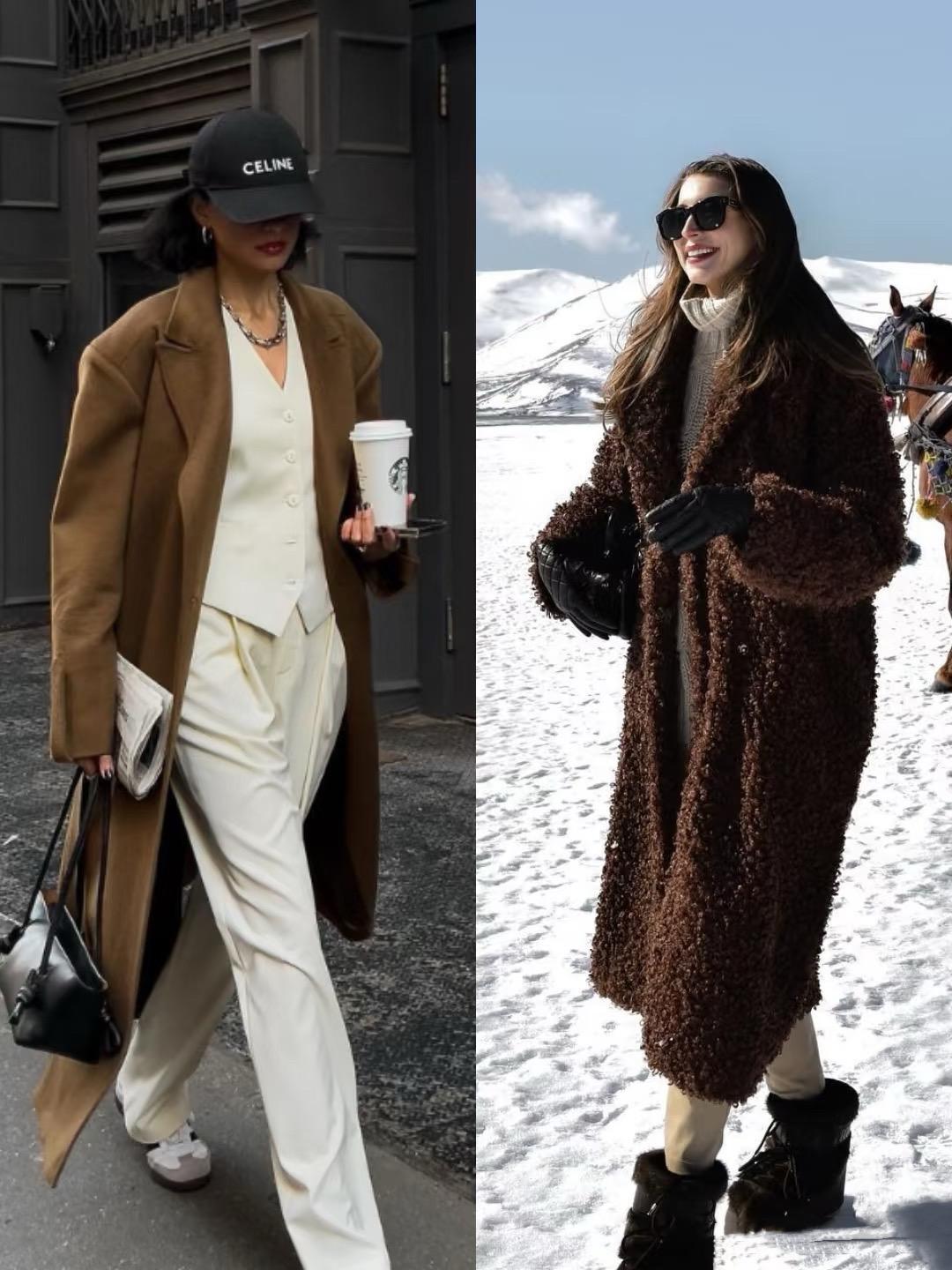 泰迪熊/大廓形的羊絨大衣,就更適合身材苗條的女生