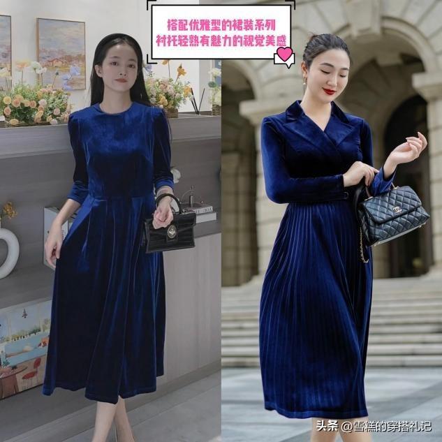 這一款藍色它本身就是屬於很直觀的深色調,所以穿起來的時候跟黑色一樣有着非常明顯的顯瘦優勢,那麼在這裏就推薦大家尤其是身形狀態比較微胖的女性,最好是能夠將修身或者貼身的設計來進行優選,整個身形狀態襯托出來的輪廓感利落又顯瘦。