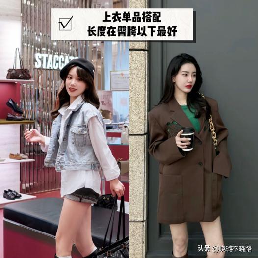 這樣的系列穿搭,建議大家在選擇上衣單品的時候,最好能夠將其長度控制在臀胯以下的部位,這樣在視覺上是能夠讓臀部和胯部這兩個部位被遮擋的,下身失蹤的穿搭方法也能夠因爲這樣的單品而襯托出來更具優勢的下身比例。