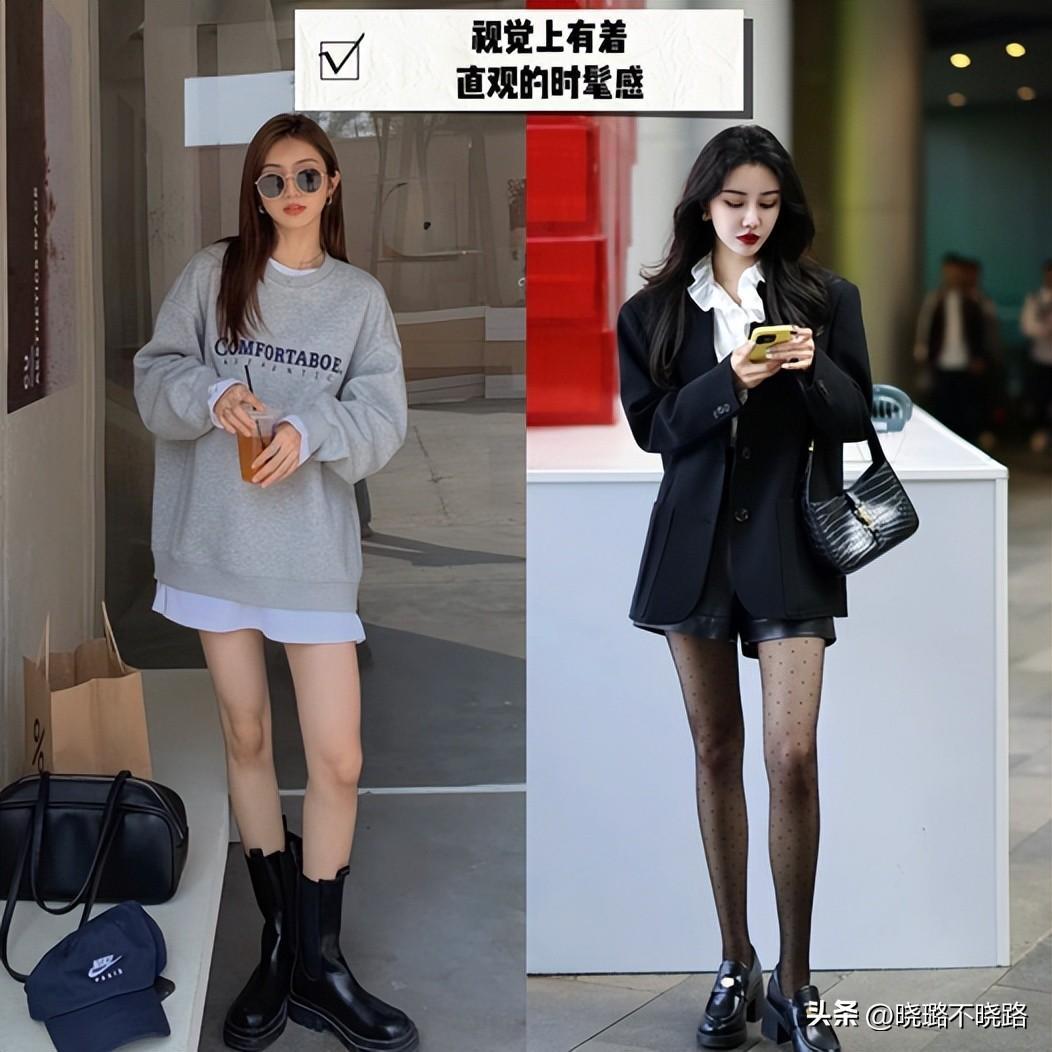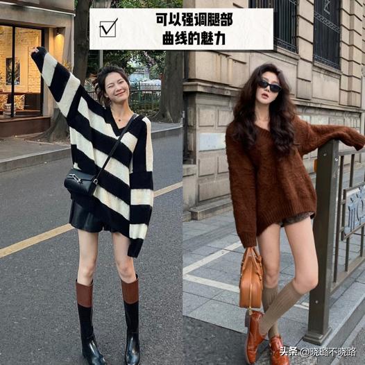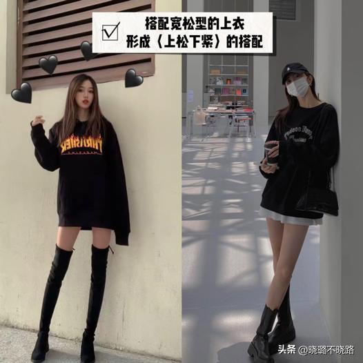 下半身不管是光腿還是搭配黑絲或者是光腿神器的元素,在進行組合的時候,它本身的線條走向就是有着很緊緻的感覺。那麼在這樣的基礎當中,我們就可以多多的去營造一些比較明顯的鬆緊對比,從而來凸顯身形的顯瘦和纖細感,這對於上半身比較微胖的女性來說是非常管用的搭配哦。