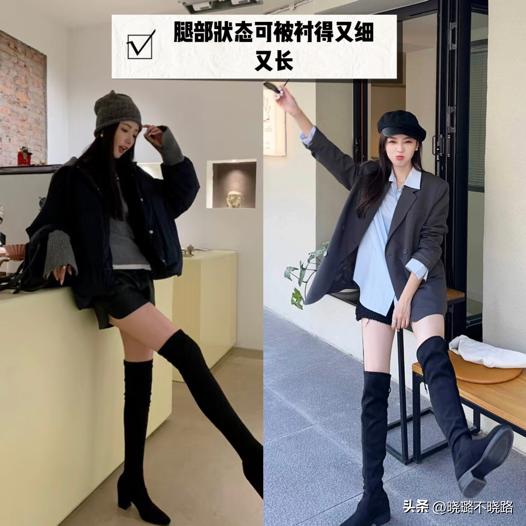 ② 上衣搭配+過膝靴,顯瘦顯腿長