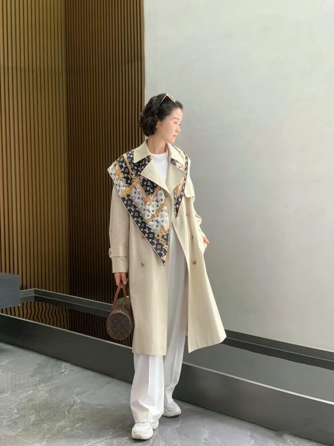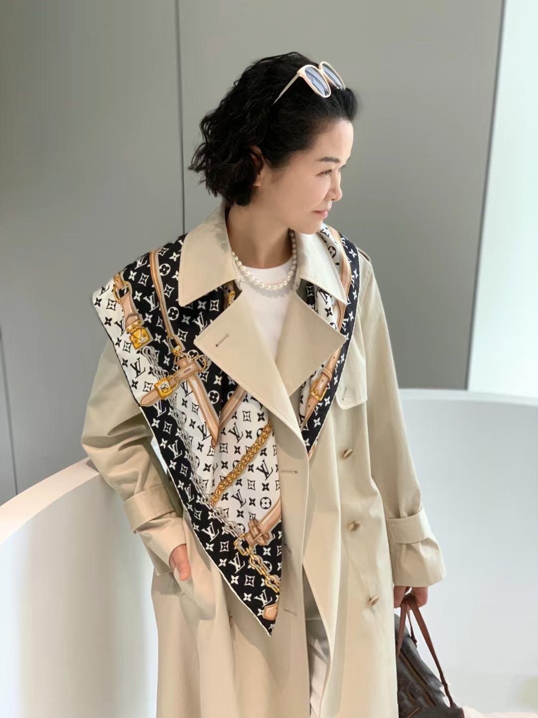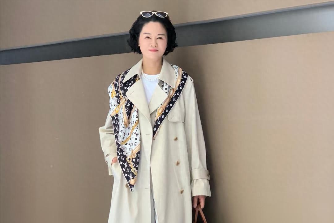 我50歲了,還在穿十多年前買的風衣,配上LV絲巾、挺洋氣!