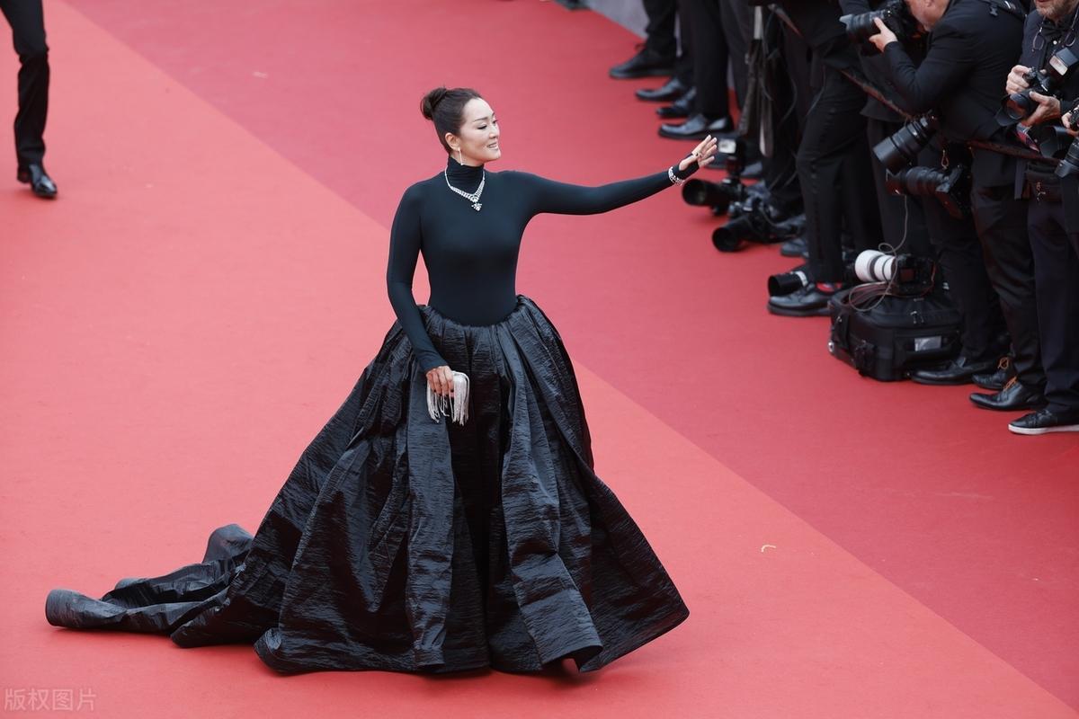 不管是多麼土味的穿搭,在鞏俐的身上都可以表現出更優雅、端莊、又大氣的姿態。一件黑色鏤空上衣,搭配了撞色的半身裙,透着青春的活力也是非常高級。