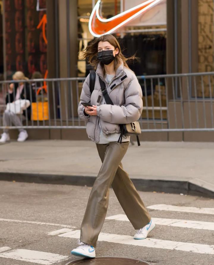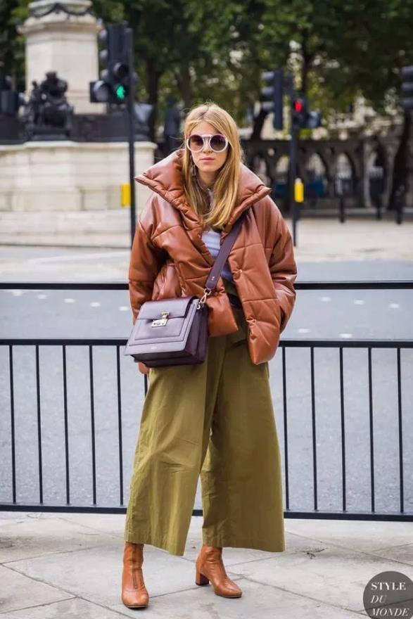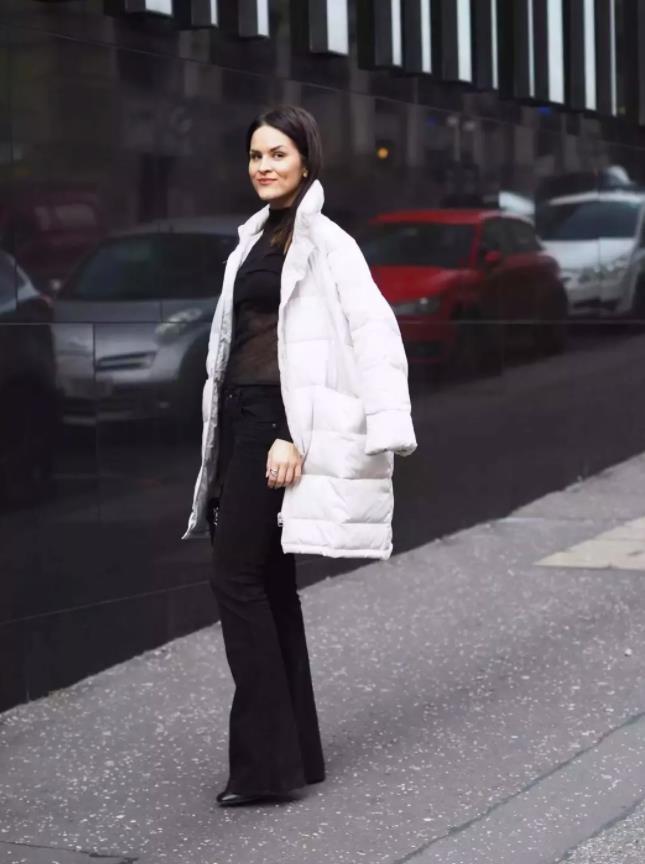冬天穿羽絨服,配闊腿褲更顯瘦!