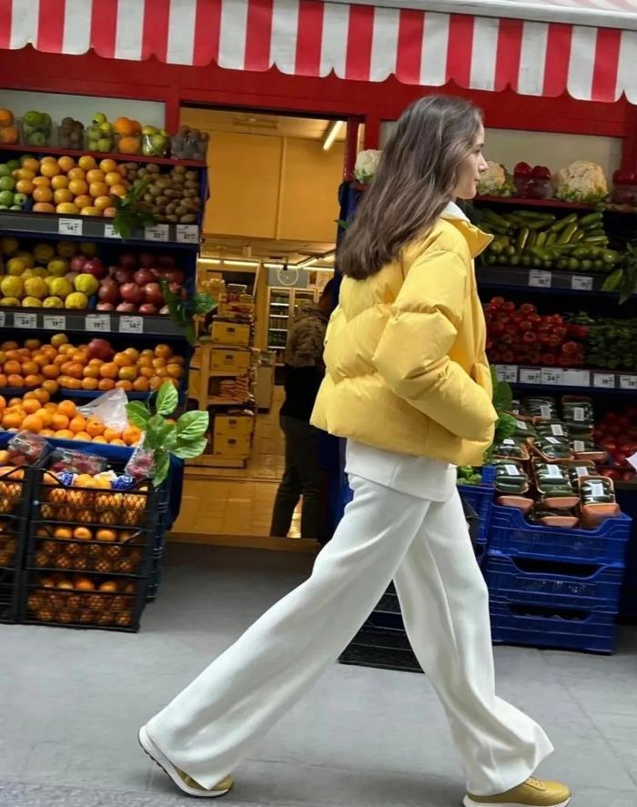 冬天就是不能沒有一件羽絨服啊,在選擇羽絨服這件外套來穿時,選擇闊腿褲來配纔是最棒的,可以盡情享受舒適和自在,同時也實現顯瘦的效果。