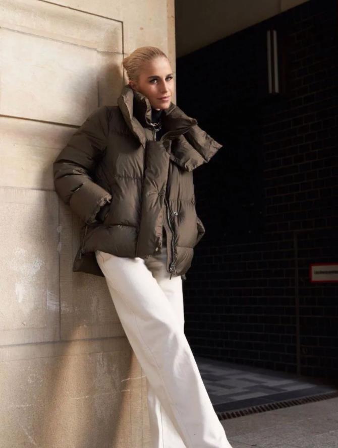 咖色的羽絨服,這個色調是真的非常顯氣質呢,搭配一條白色牛仔闊腿褲,這兩個顏色組合在一起,十分耐看時髦呢,短款長度的羽絨服,小個子穿能輕鬆打造出高挑感,也能把大女人的氣場放大,搭配的搭配帥氣隨性,又能穿出自在和灑脫。