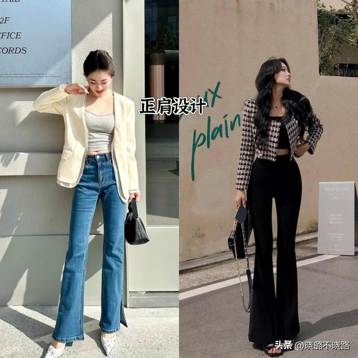 挑選微喇褲也很有講究,尤其是腰線的高度,一定要超過肚臍位置,低腰款很容易顯腿短。其次,褲腿的長度要遮住腳踝和鞋面,延伸性更好。