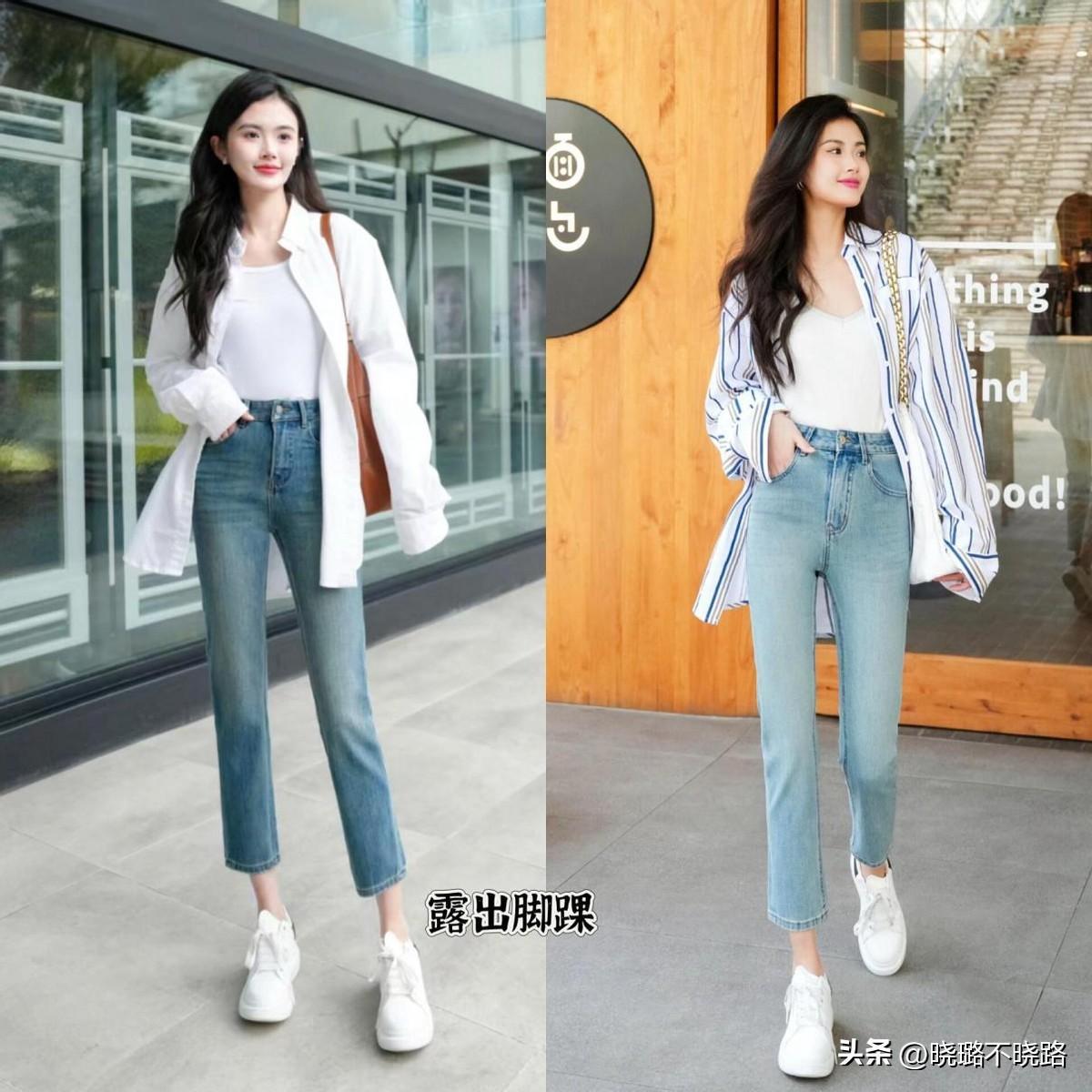 尤其是牛仔材質的九分煙管褲,面料硬挺有型,不僅顯瘦還具備塑形的效果,如果你的腰臀線條不是很好看,建議可以選擇高腰款的煙管褲,輕鬆優化身形曲線。