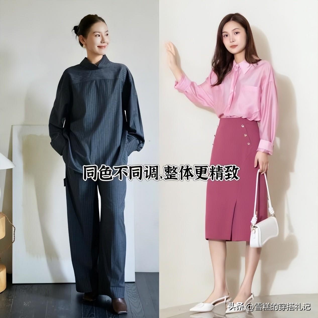 層次感是如何打造呢?在同色系或者相近色系的組合中,藉助於不同飽和度和亮度來塑造,使得我們的穿搭層次豐富更加顯瘦顯高。而且同色系的組合完全步需要掌握什麼高超的技術,很適合穿搭小白入手。在撞色搭配中,色調的差距越明顯,越能夠穿出比例感,而且還可以使得我們的搭配更加亮眼,狠狠拿捏高級氣質。比如紅色+藍色、藍色+粉色、黃色+綠色等等,都是目前主流的一些撞色搭配,穿起來超級吸精養眼。