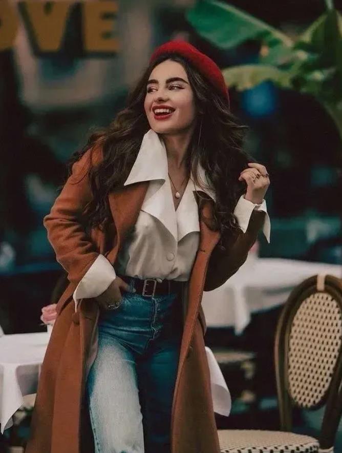 卡其色雙面大衣,真的是很顯氣質的,內搭一件白色襯衫,氣質與美麗並存,盡顯女性的高級與品味。搭配一條藍色牛仔褲,青春又減齡,腰間配上一條腰帶進行點綴,很好修飾了整個身材比例,穿出帥氣和幹練,也讓人充滿魅力。