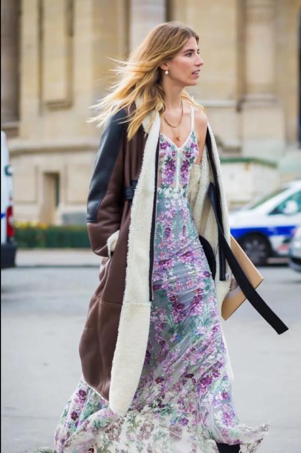 今年秋冬,皮衣外套也很受歡迎呢,黑咖色的皮衣外套,內搭一條印花吊帶連衣裙,這樣的穿搭看起來也太美了,兼顧了高級與優雅。能穿出風情萬種的氣息,搭配起一雙黑色長靴,這樣穿可溫暖了,有種大女人範的既視感。