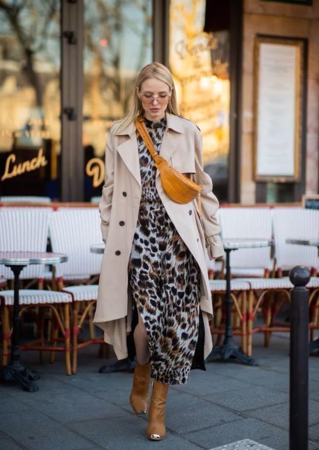 對於風衣就是沒有抵抗力,特別適合秋冬季節的外套之一,淺卡其色風衣,這個色調非常顯氣質,也不挑膚色,內搭一件立領印花連衣裙,恰到好處展現出女性味,還穿出了一種高挑感,選擇一雙咖色靴子來配,盡顯幹練又顯氣質。