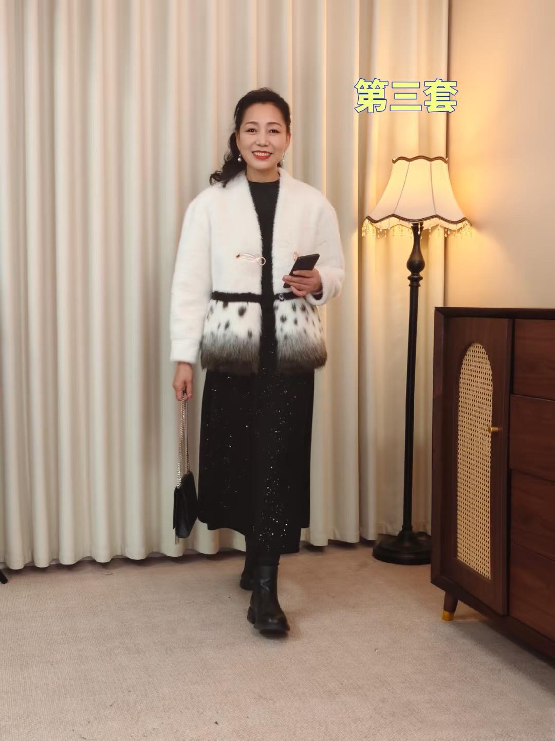 一組比較保暖的穿搭,毛絨外套自帶貴氣感,黑白的撞色也很顯瘦。剛好在腰線下方做了黑色元素,還有一種自帶腰線的效果,顯高又優化比例。