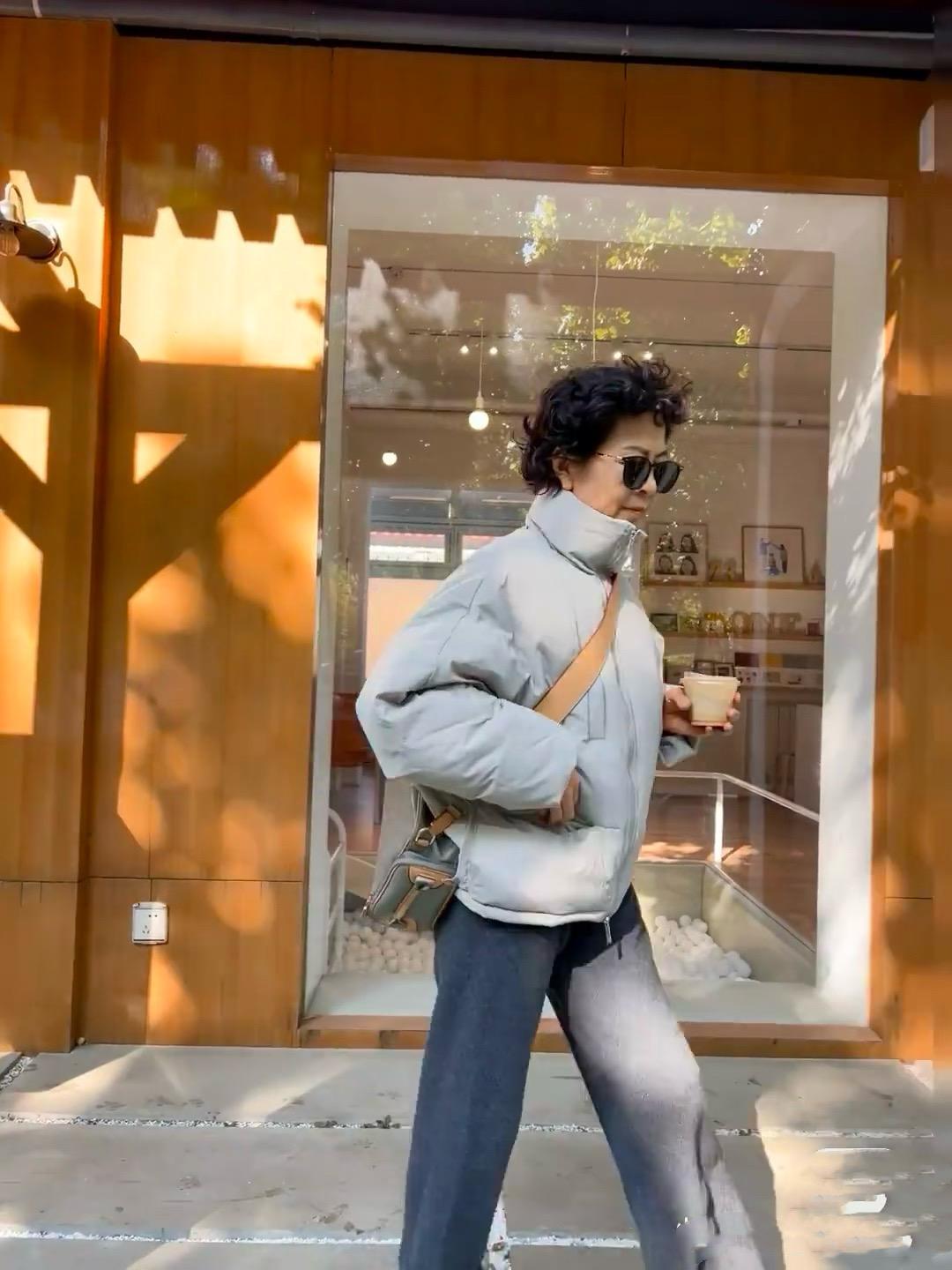這種寬鬆的羽絨服,也適合我這個年紀。首先短款羽絨服很利落、其次版型相對寬鬆,而且蓬鬆度很好,保暖性很強,女兒買的這件羽絨服深得我心。