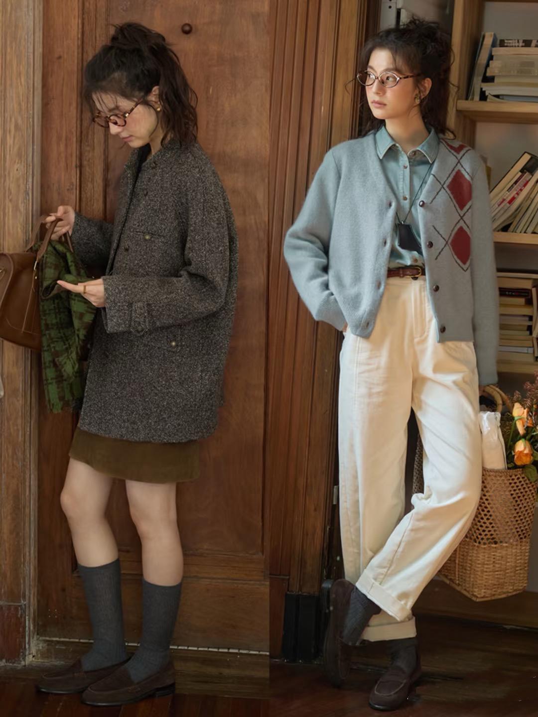 每一件單品,都帶着復古風的腔調、知識分子的情懷,疊搭在一起也是高級有品位。色彩搭配、依然是鄰近色組合,不會誇張醒目。