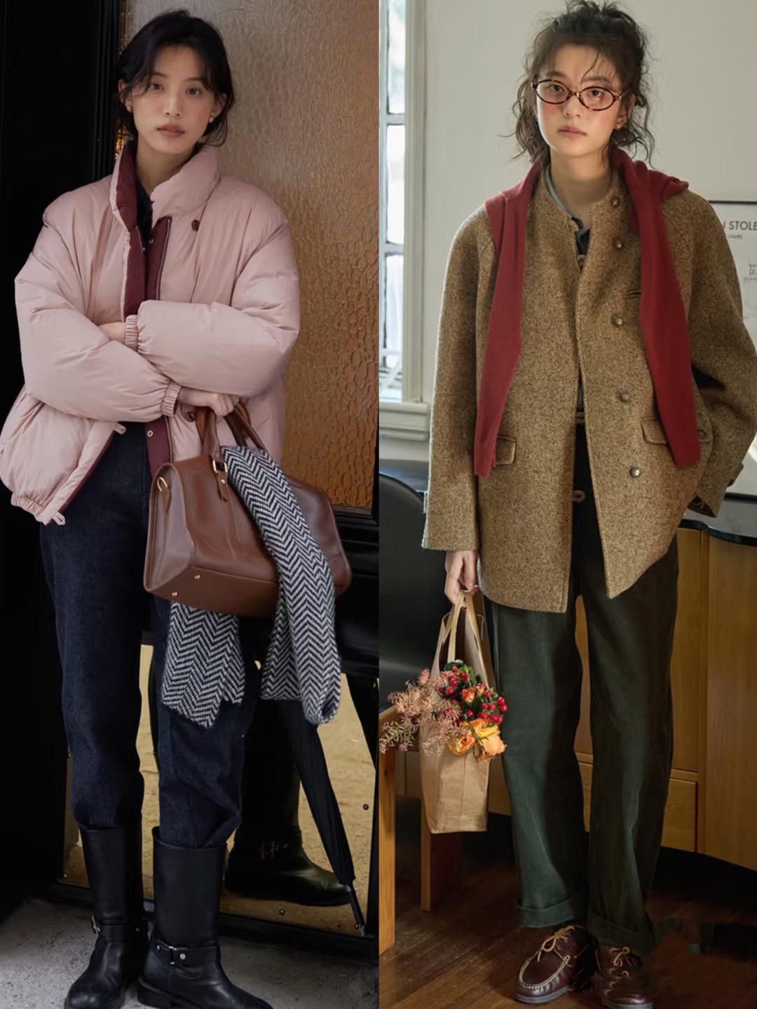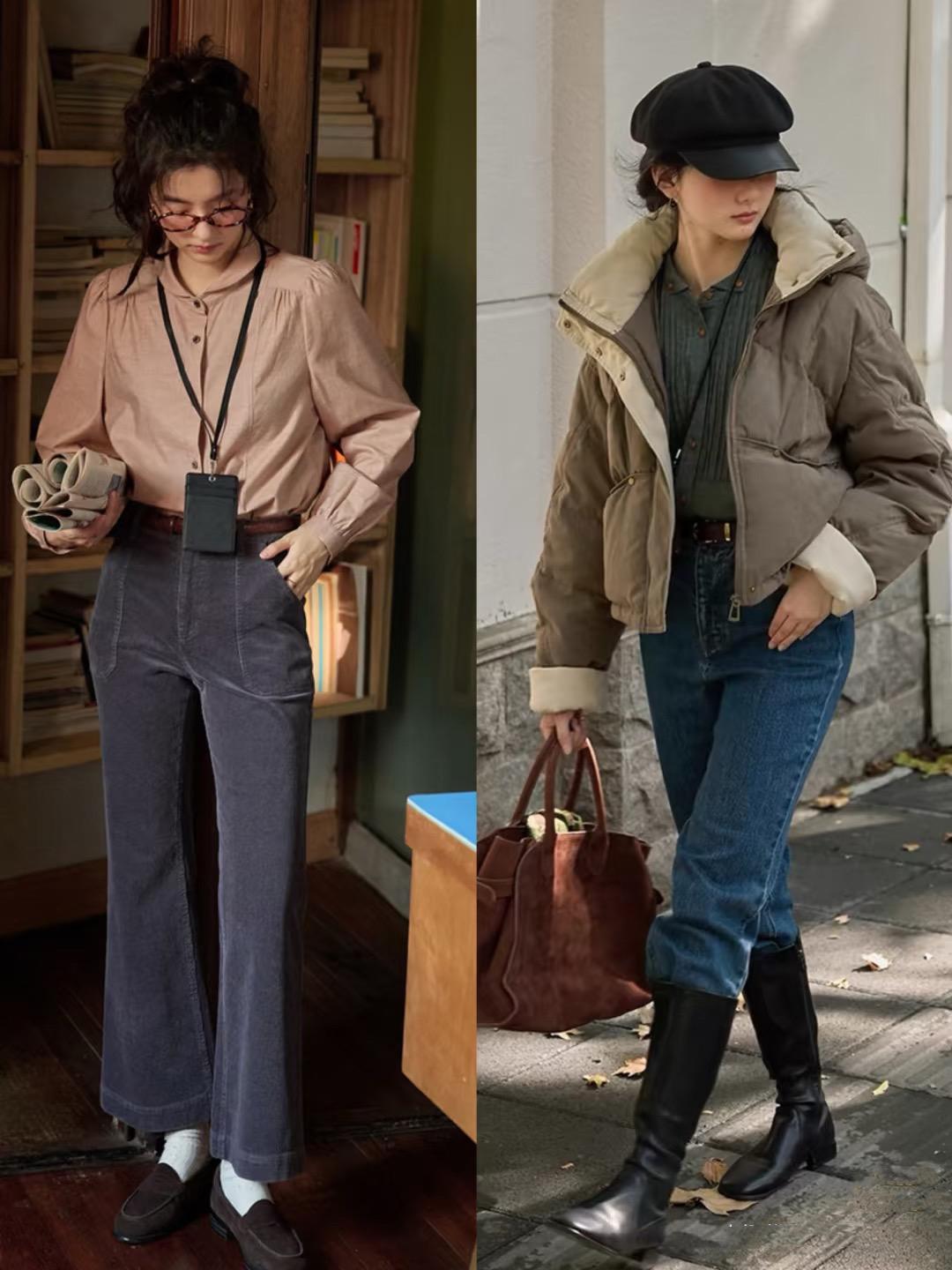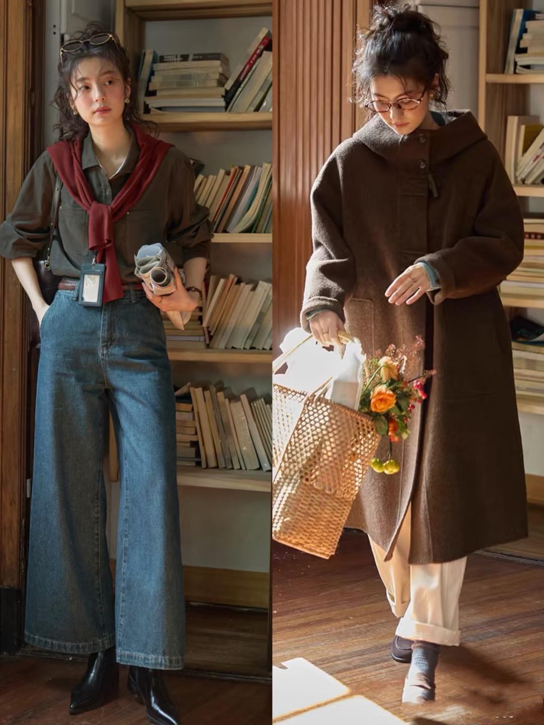 比如呢大衣、鉤花的毛衣、條絨的闊腿褲、翻領的襯衫、復古風的牛仔褲,都格外常見。以內斂低調的方式,表現着內心的從容與平和。