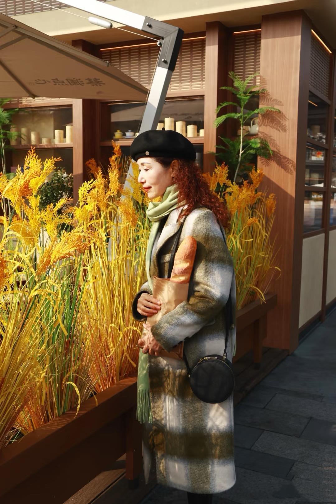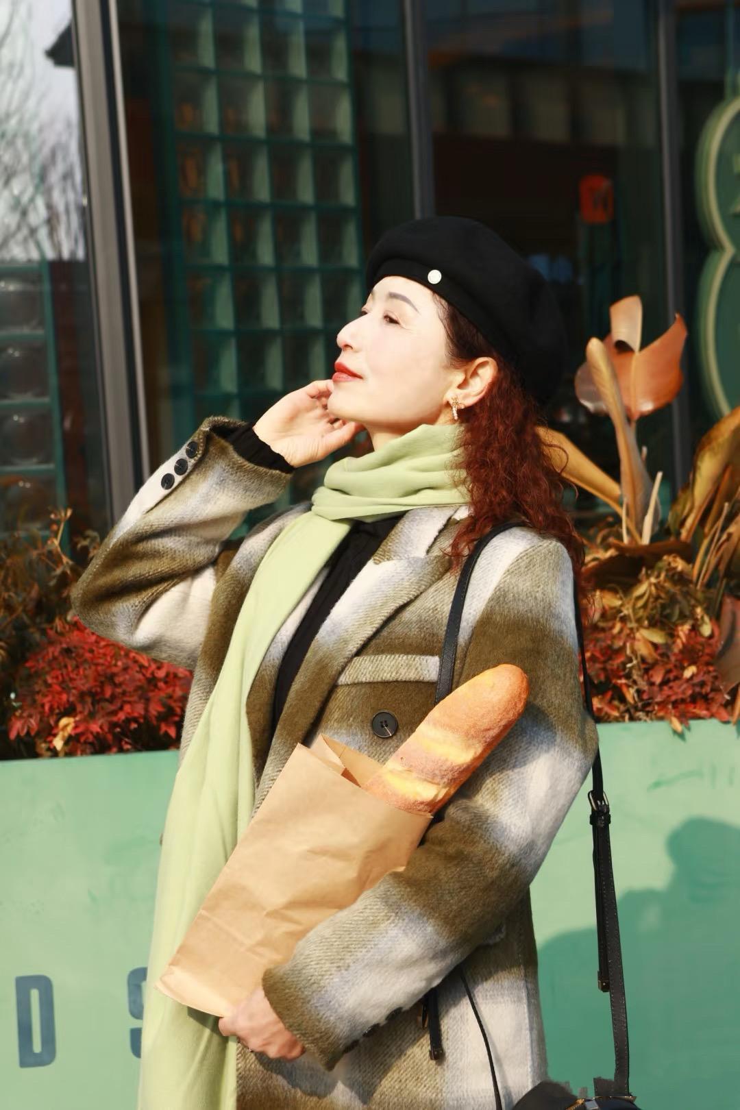 想要提升秋冬氛圍,我還喜歡通過帽子、圍巾來凹造型。年紀大了,一定要注意頭部的保暖,不然風一吹就會覺得頭痛。