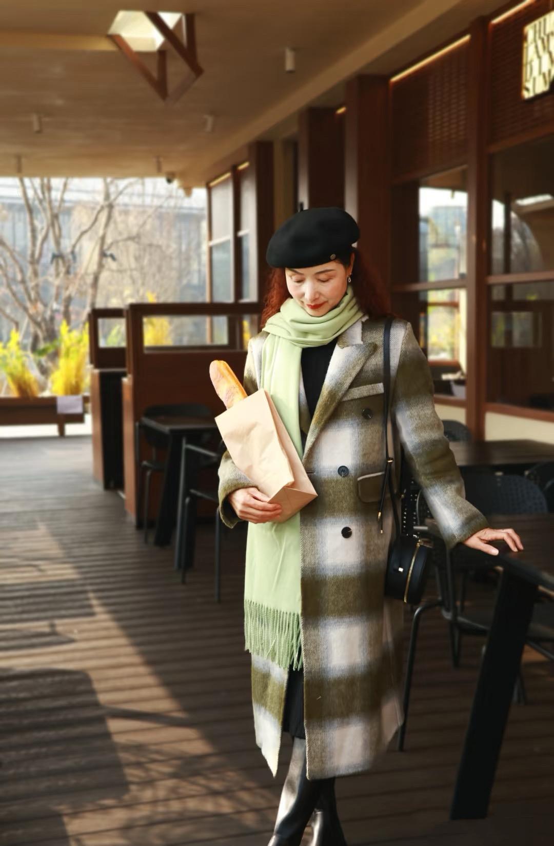 其實我這件格子大衣,還是非常好搭配的。色彩比較柔和、屬於一種比較低調、很大氣的風格。