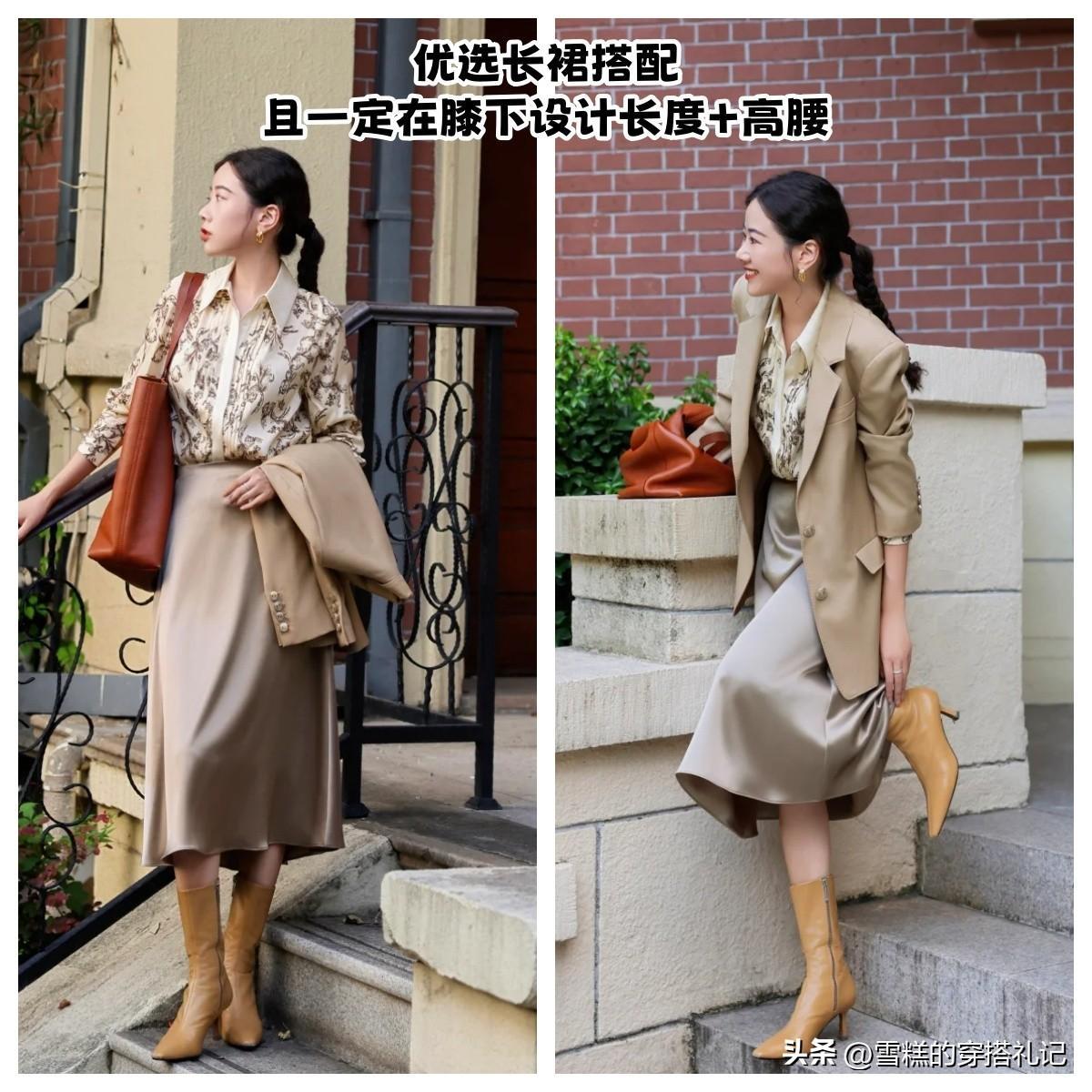 (1)長裙的搭配,膝蓋以下長度+高腰設計
