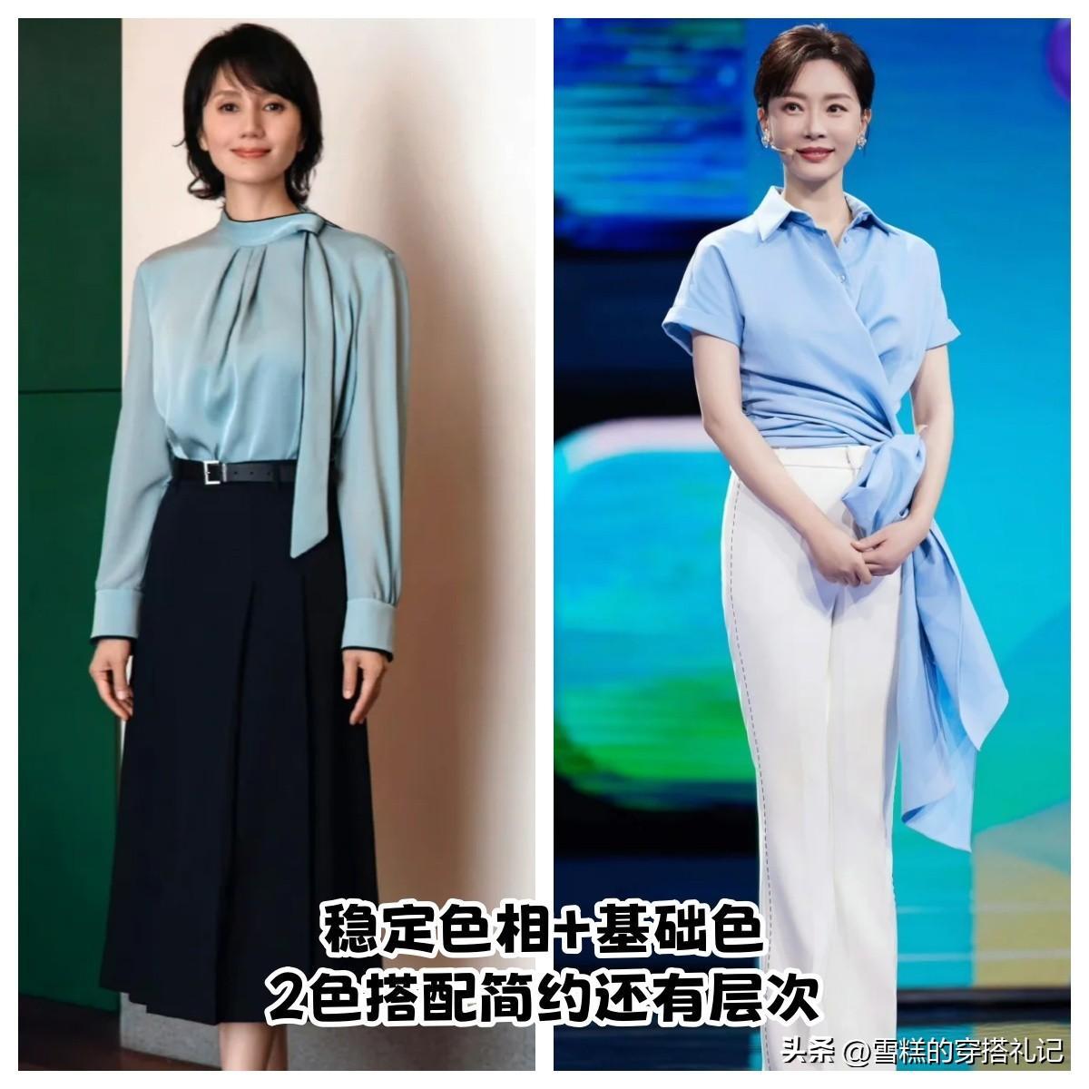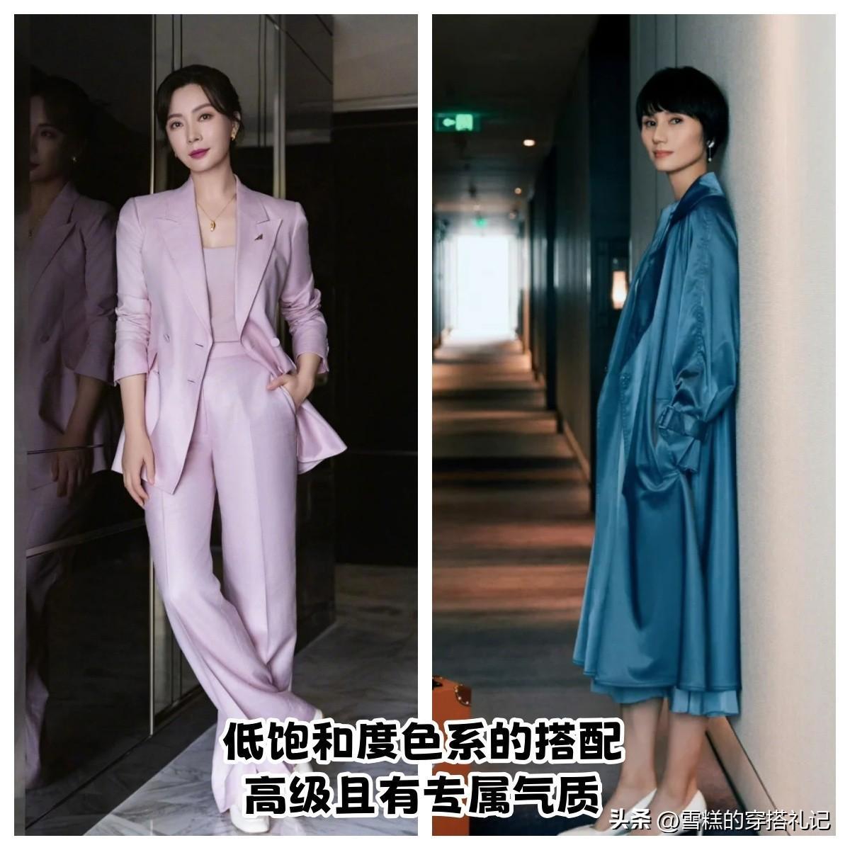 純色系在進行搭配的時候就一定要運用色不過三的原則,這樣對於中年在座的女性而言,整體的氣質狀態和視覺美感才能夠最佳地展現出來,在這裏就推薦大家,不管是中性色還是飽和度降低之後的色相都可以結合基礎色兩色進行主色調搭配。