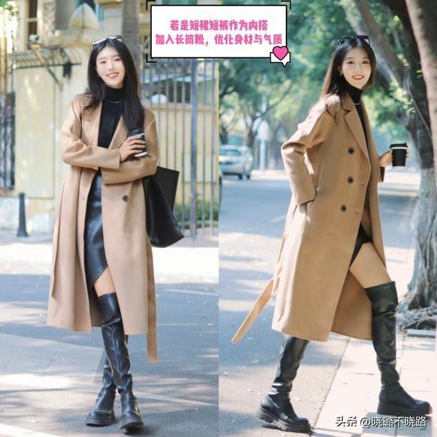 既然我們所選擇的大衣是屬於長款的設計,那麼在秋冬季節當然又少不了非常時髦的露腿穿搭了,建議大家的內搭也可以大膽的去嘗試一些短款的褲裝或者是裙裝露出來我們的腿部魅力,記得做好保暖工作搭配光腿神器或者是黑絲,那麼這樣的組合就很適合與長靴進行搭配。