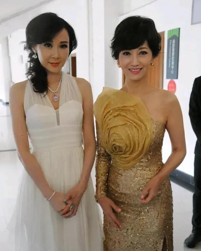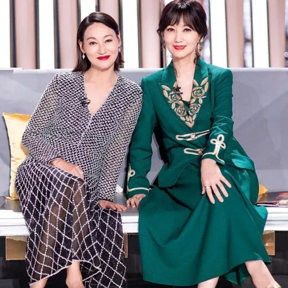 在懟臉拍的同框照中,趙雅芝穿着白色旗袍,跟身邊穿着黑色禮服的林青霞看上去不分上下。