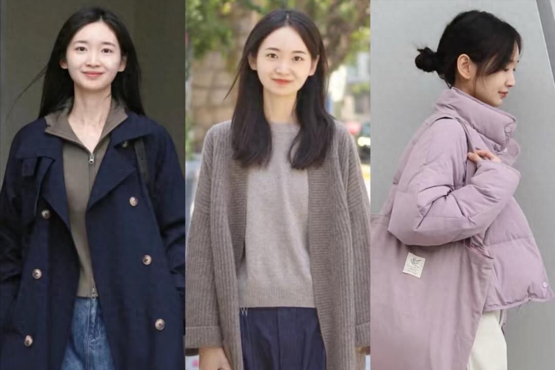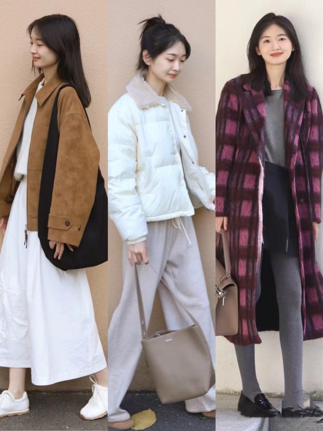 簡單幹淨的服裝,首先就是配色上簡潔大氣。儘量多選擇純色系或者同一花色的服裝。比如白色羽絨服、燕麥色毛呢褲、棕色外套、白色半身裙等等。