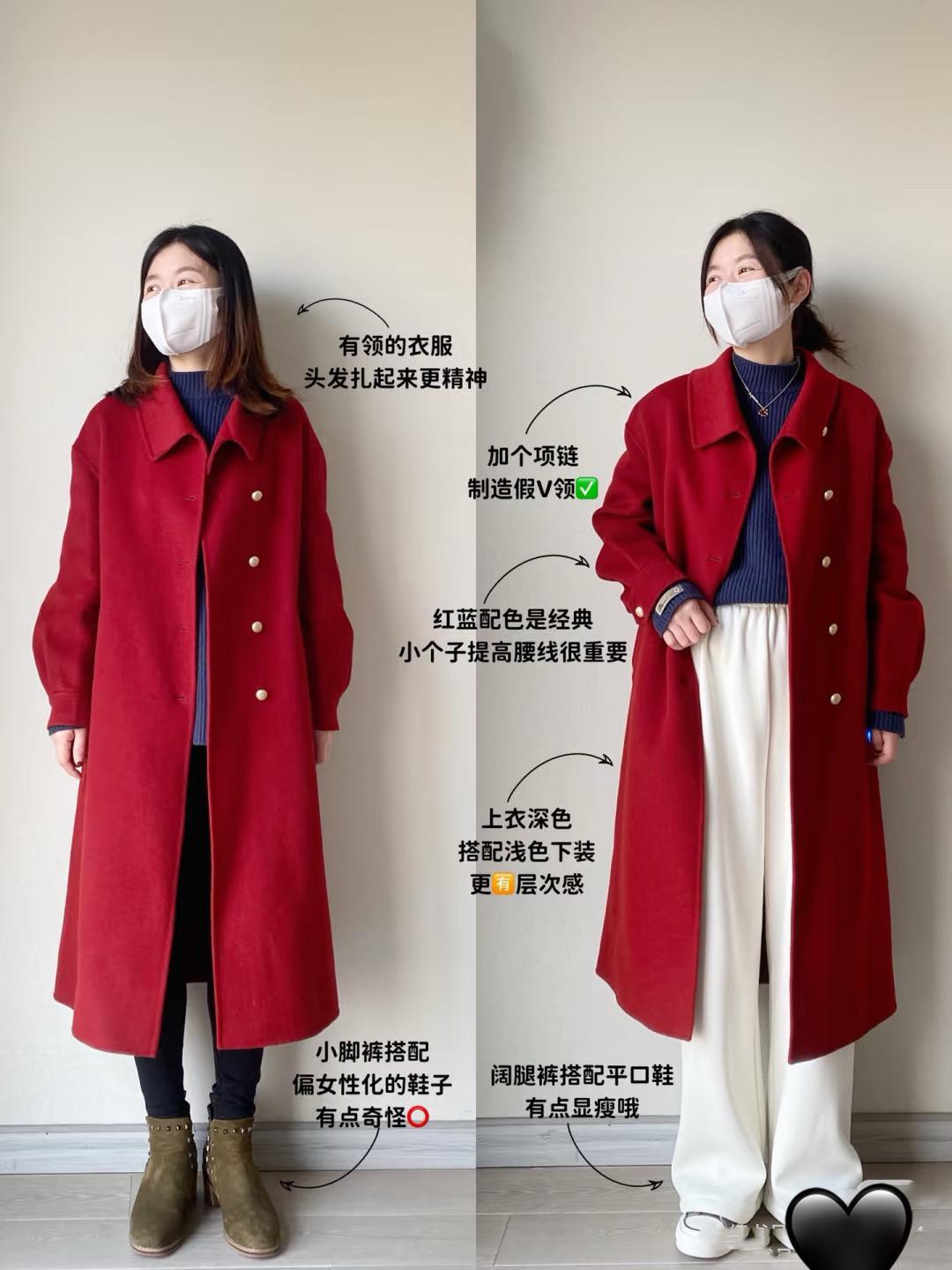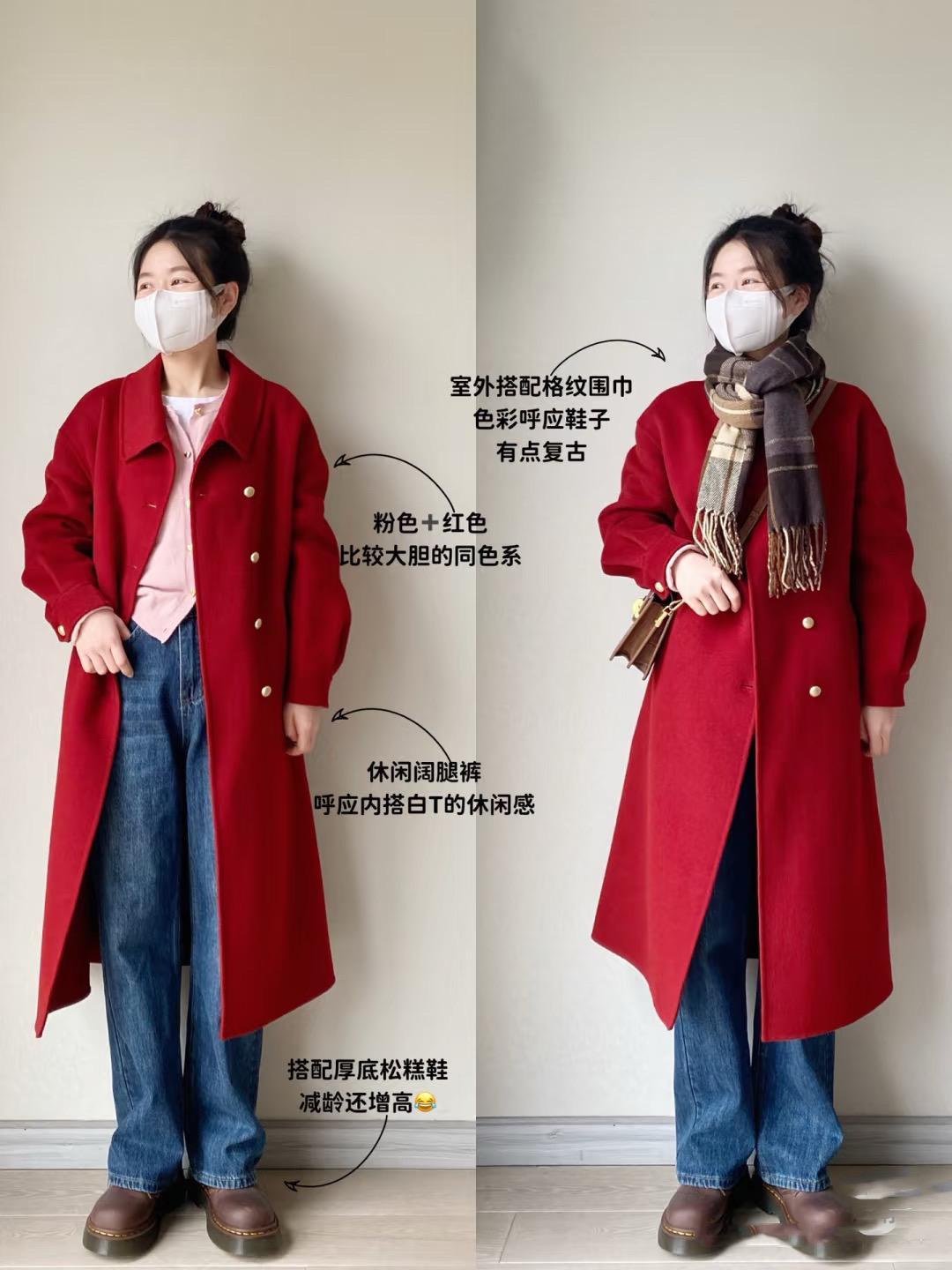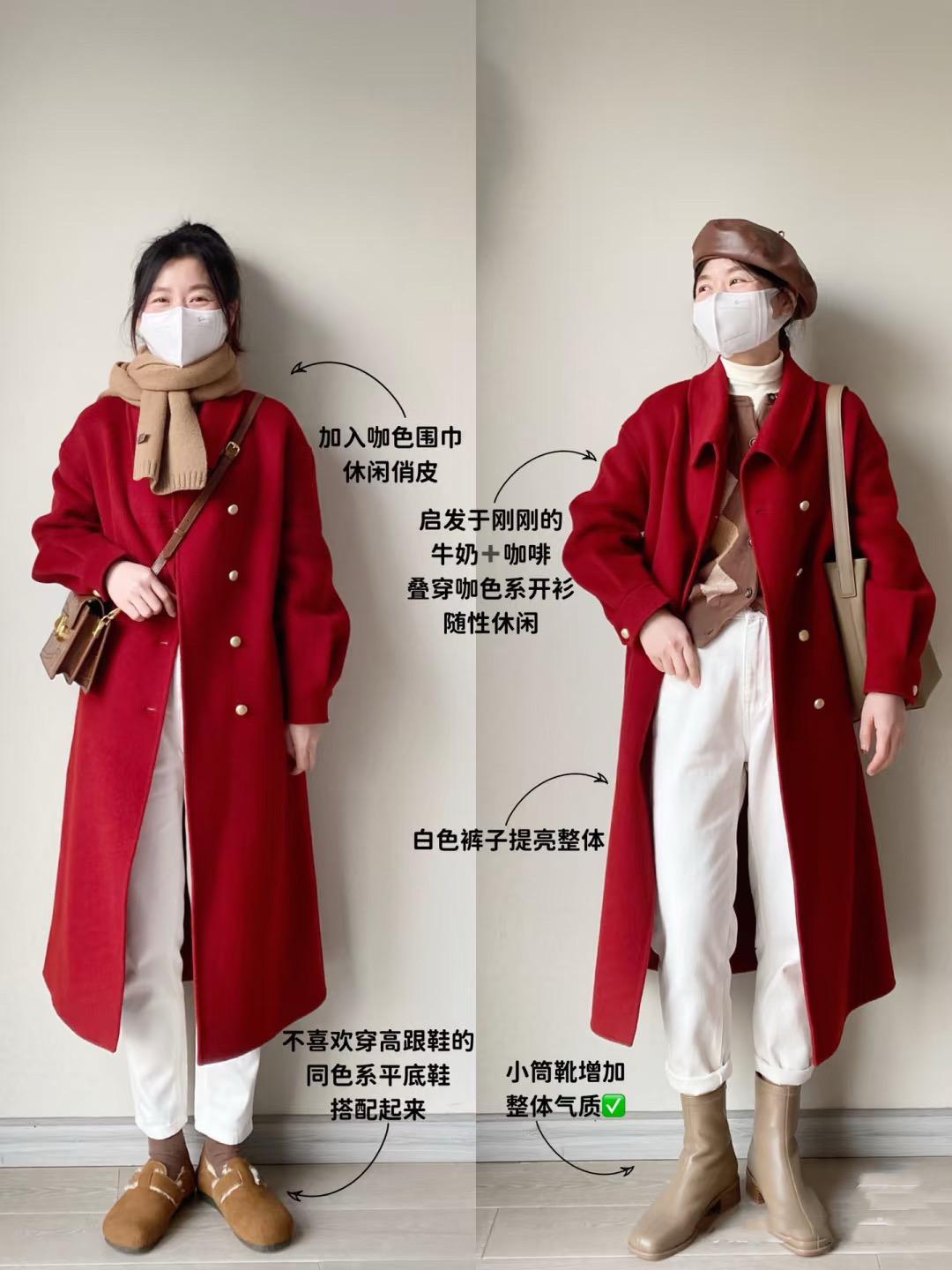爲了把紅色呢大衣穿的好看,我也是煞費苦心,選擇了更多的穿着方式。因爲一件衣服,如果總是按照一個思路去穿,也會沒了新鮮感。
