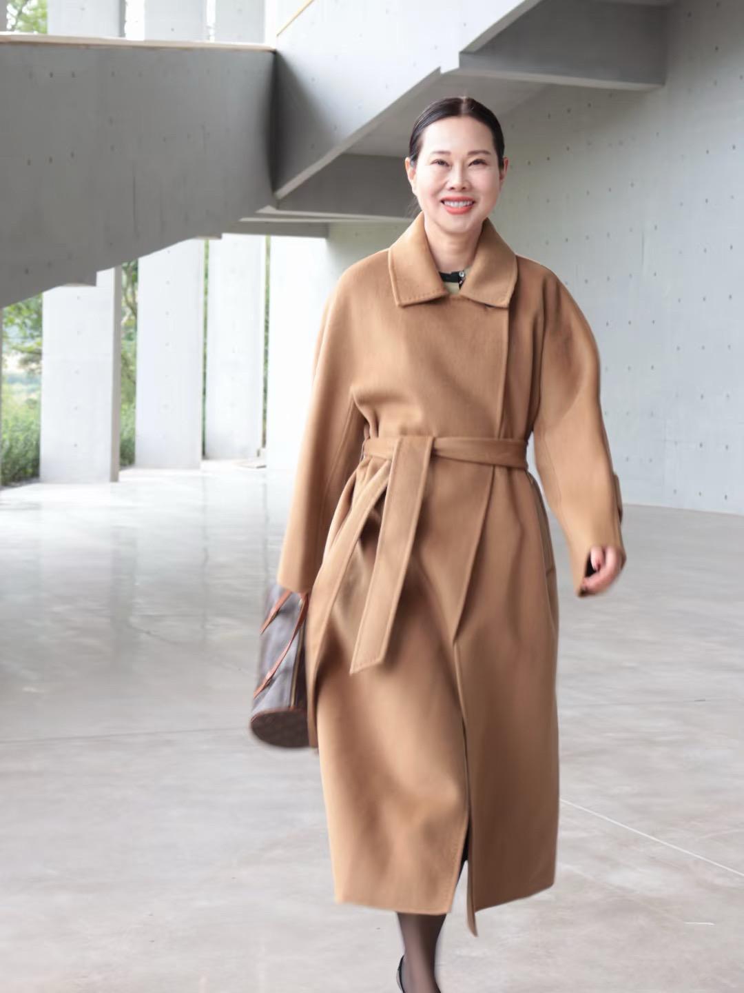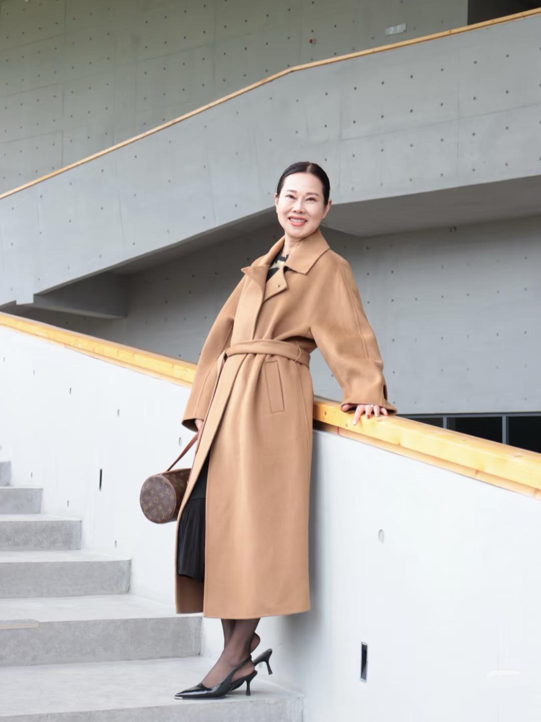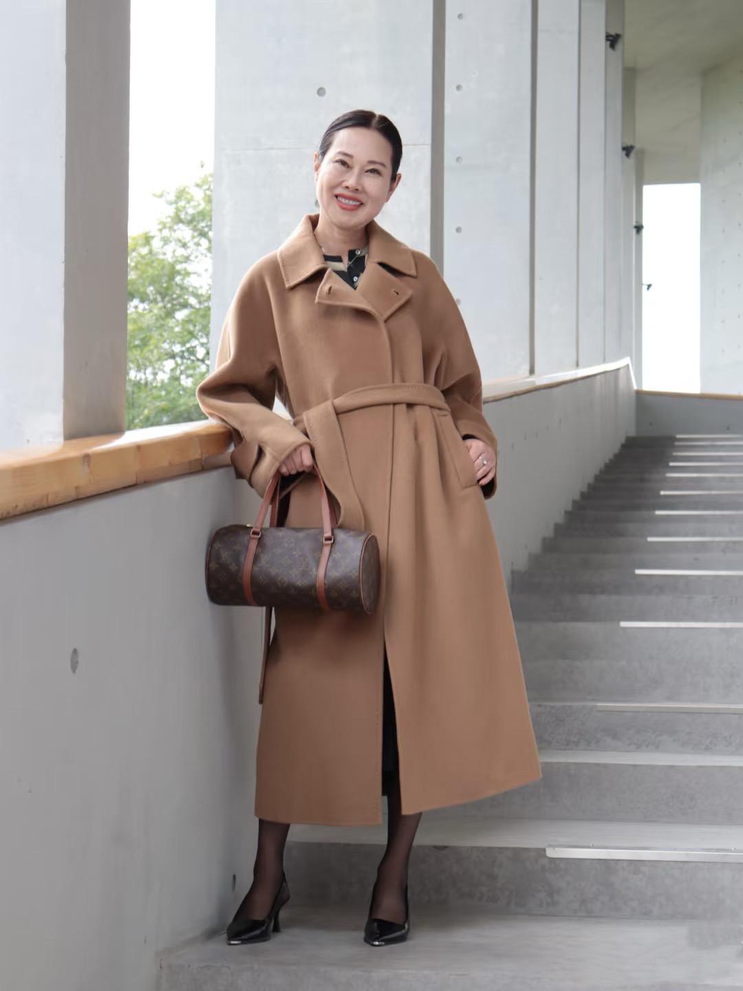 在我的衣櫥裏,也有好幾件羊絨大衣。而我最喜歡的就是這一件駝色羊絨大衣,深駝色比較大氣、也符合我這個年紀,就算穿到80歲都沒有問題。