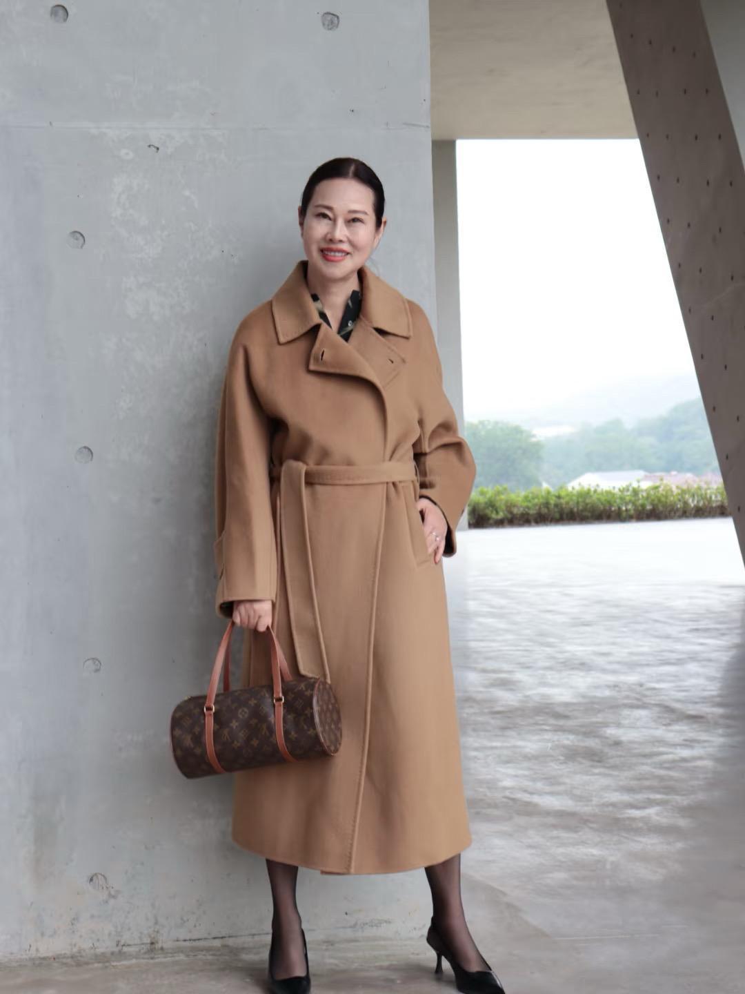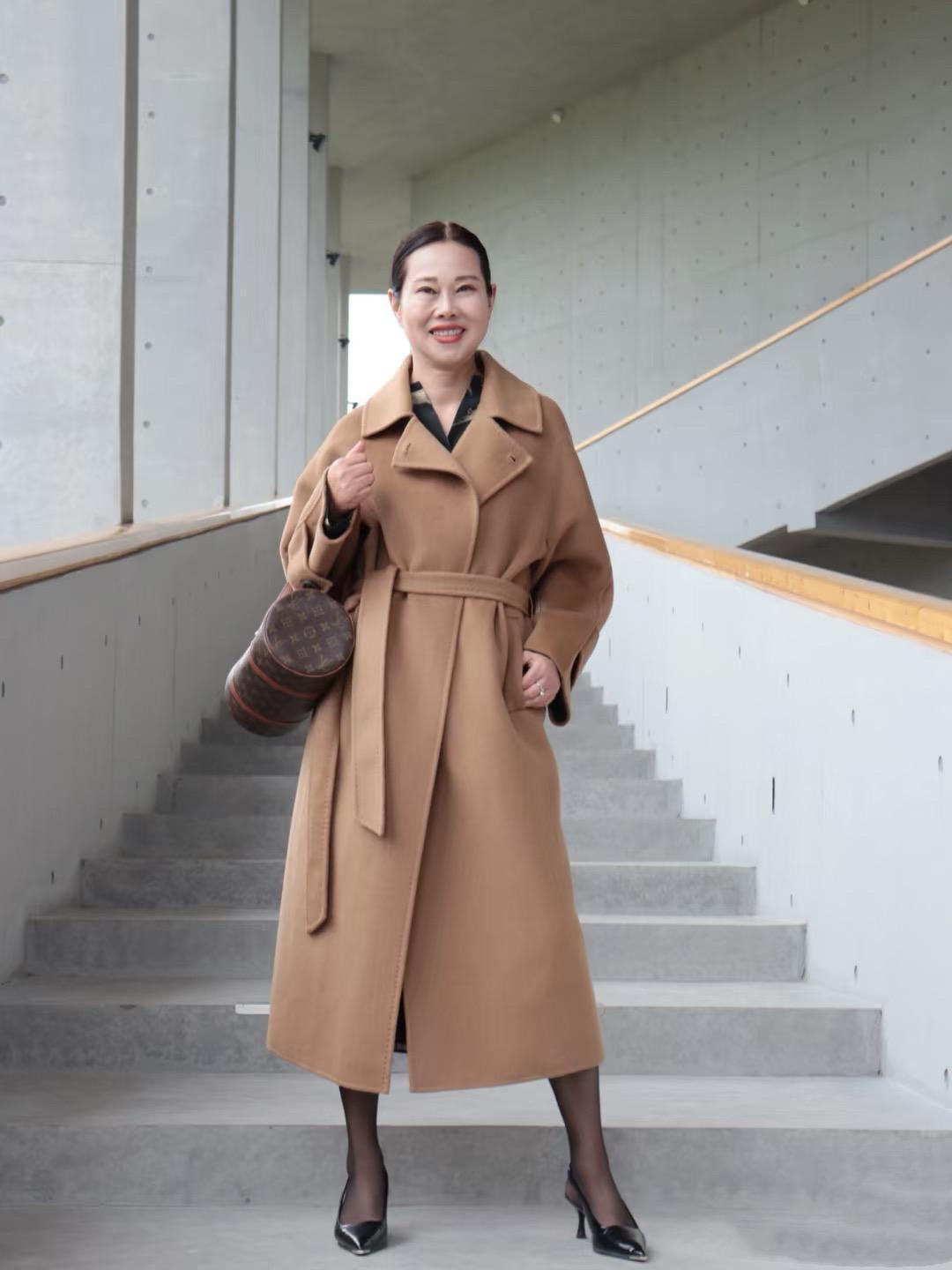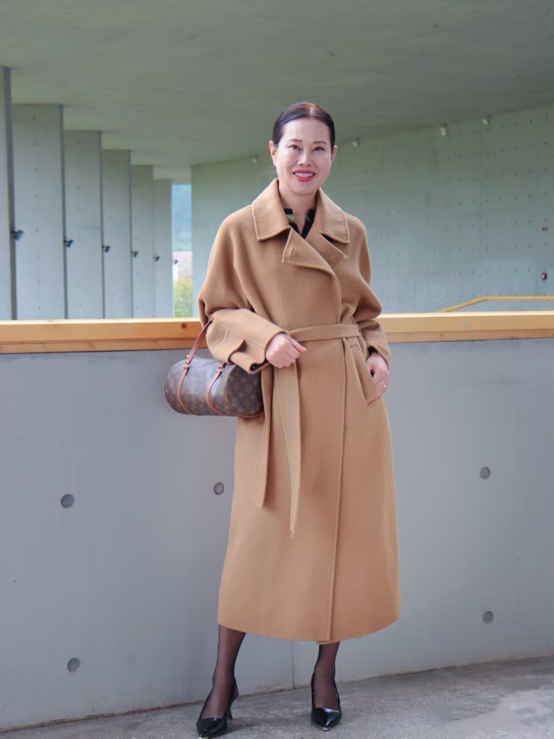 在我的衣櫥裏,也有好幾件羊絨大衣。而我最喜歡的就是這一件駝色羊絨大衣,深駝色比較大氣、也符合我這個年紀,就算穿到80歲都沒有問題。