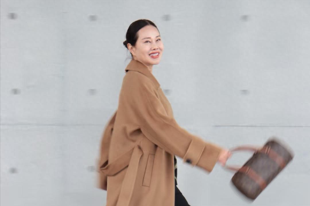 天冷的時候,我就會把釦子系起來,腰帶自然的大衣打一個結。其實我們大齡女性繫腰帶,尤其是這種大衣自帶的腰帶,不要去系蝴蝶結,也不要系在正中間。