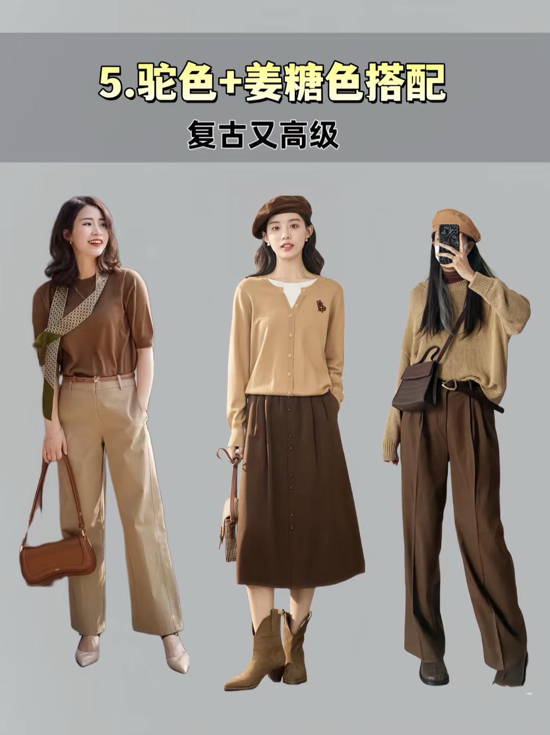 復古又高級的美拉德風搭配,有一種更高級的美。像這種駝色毛衣+焦糖色半身裙的組合,既溫柔又內斂,也很有秋冬季節的氛圍。
