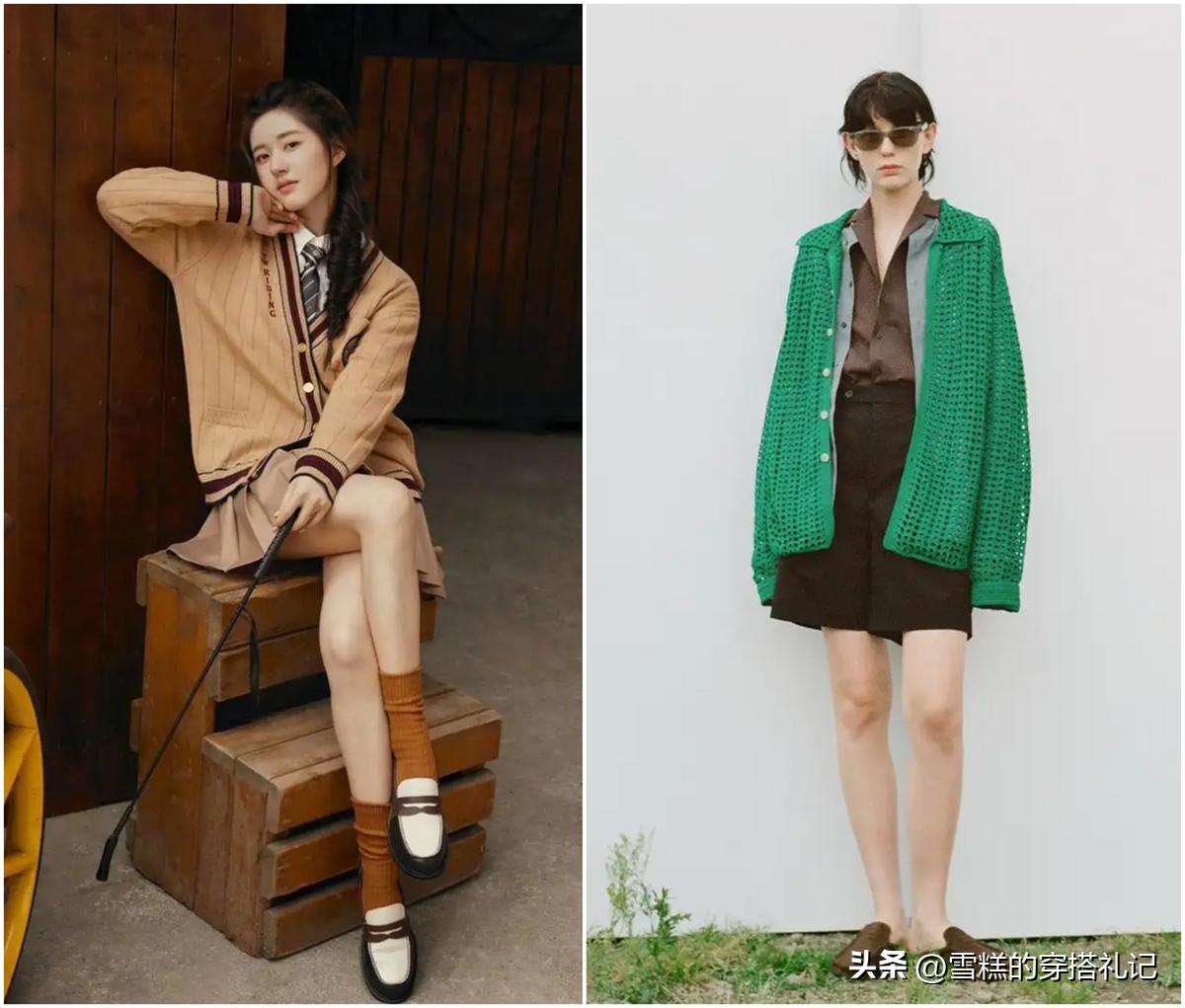 流行的光腿穿搭,重心是在腿上,因此上身和鞋的部分都要起到很好的輔助作用。爲了突出腿部的光潔和纖瘦,上身層次感儘量豐富來增加厚度,能讓下半身顯得更纖薄。同時我們選擇搭配的鞋子也要注重立體性,借鑑圖中的選擇小皮鞋類型的穿搭,效果更佳。