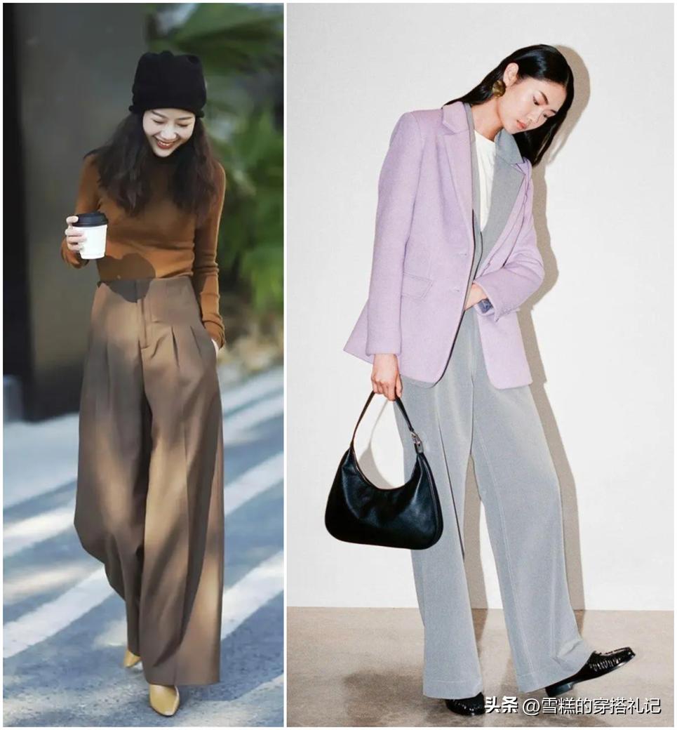鞋子和裙子、褲子的寬度不要相差太遠,或者寬窄度顛倒。比如我們穿比較寬的褲子、裙子,就不要再選擇很粗很厚的鞋子去搭配,會顯得整體很笨重且顯矮。借鑑組圖的搭配,直筒褲型和比較休閒常規的鞋型搭配,而比較寬的褲腿便和較輕盈的鞋子搭配,這樣就很協調。